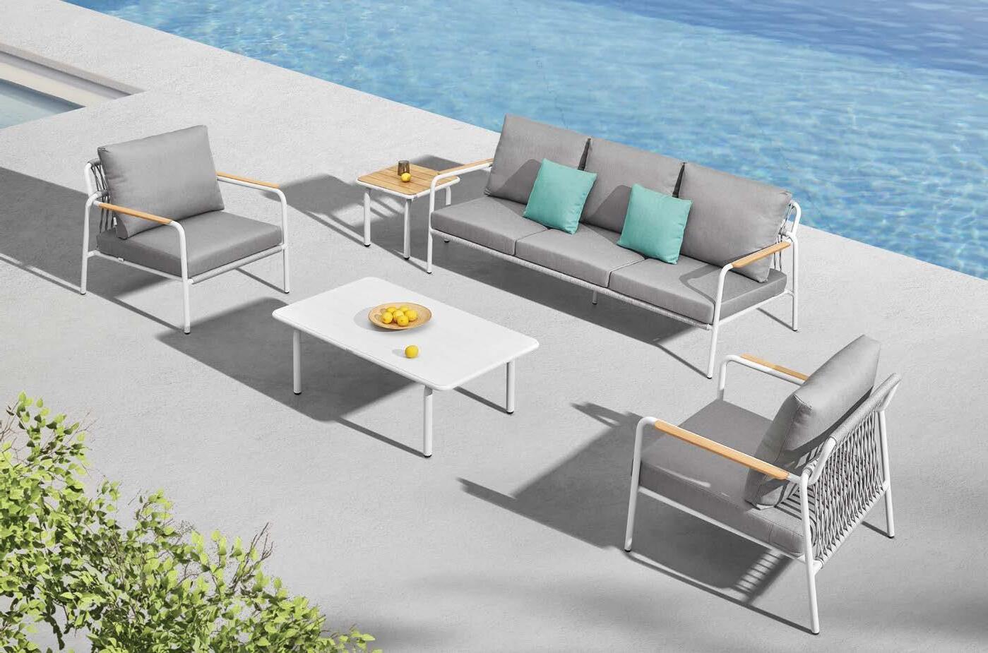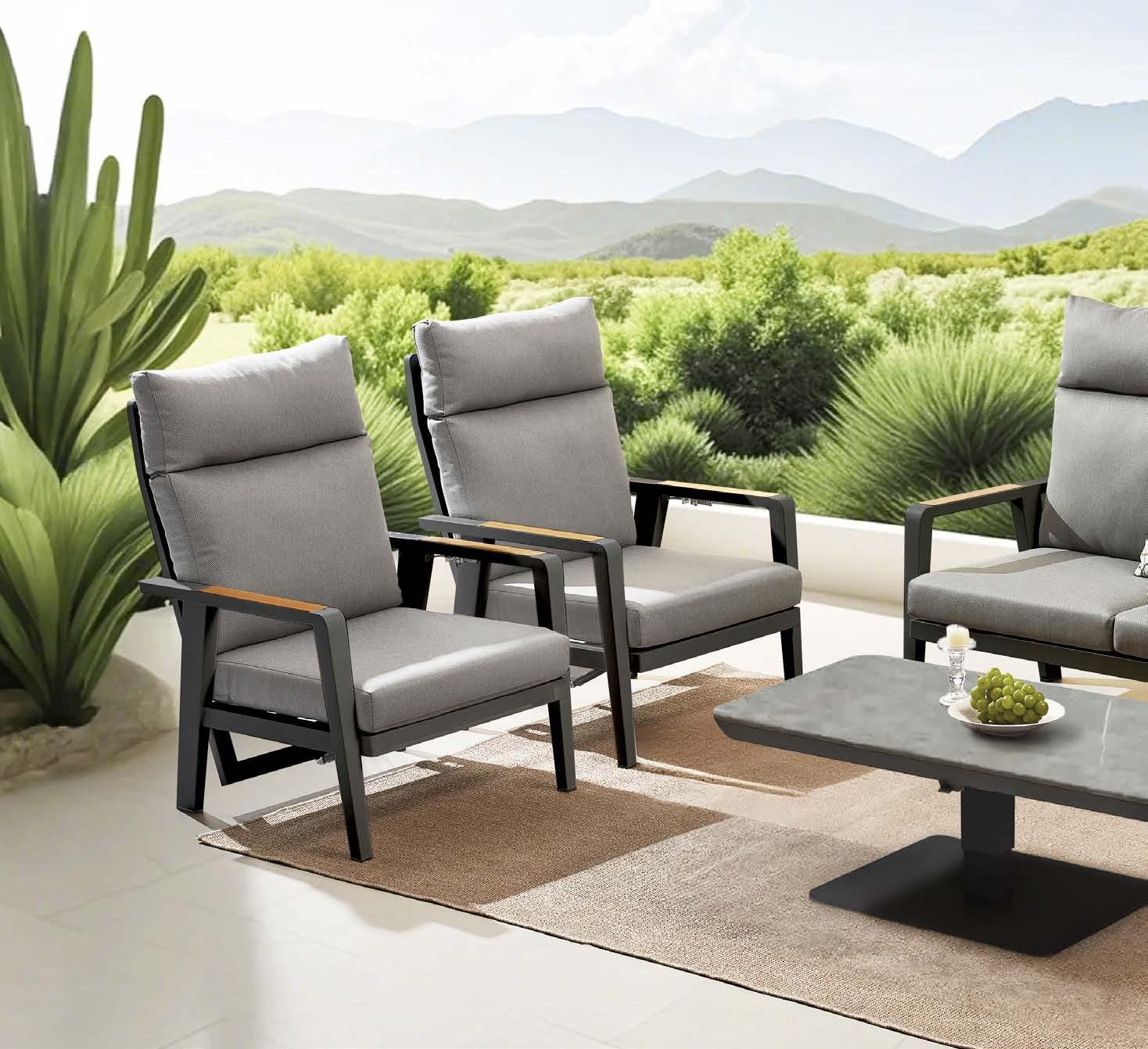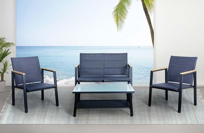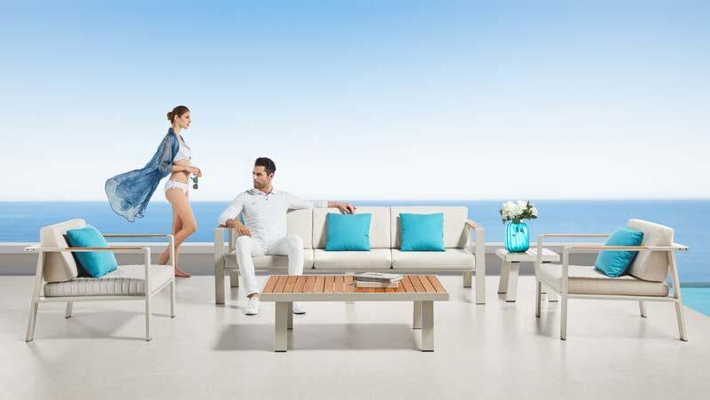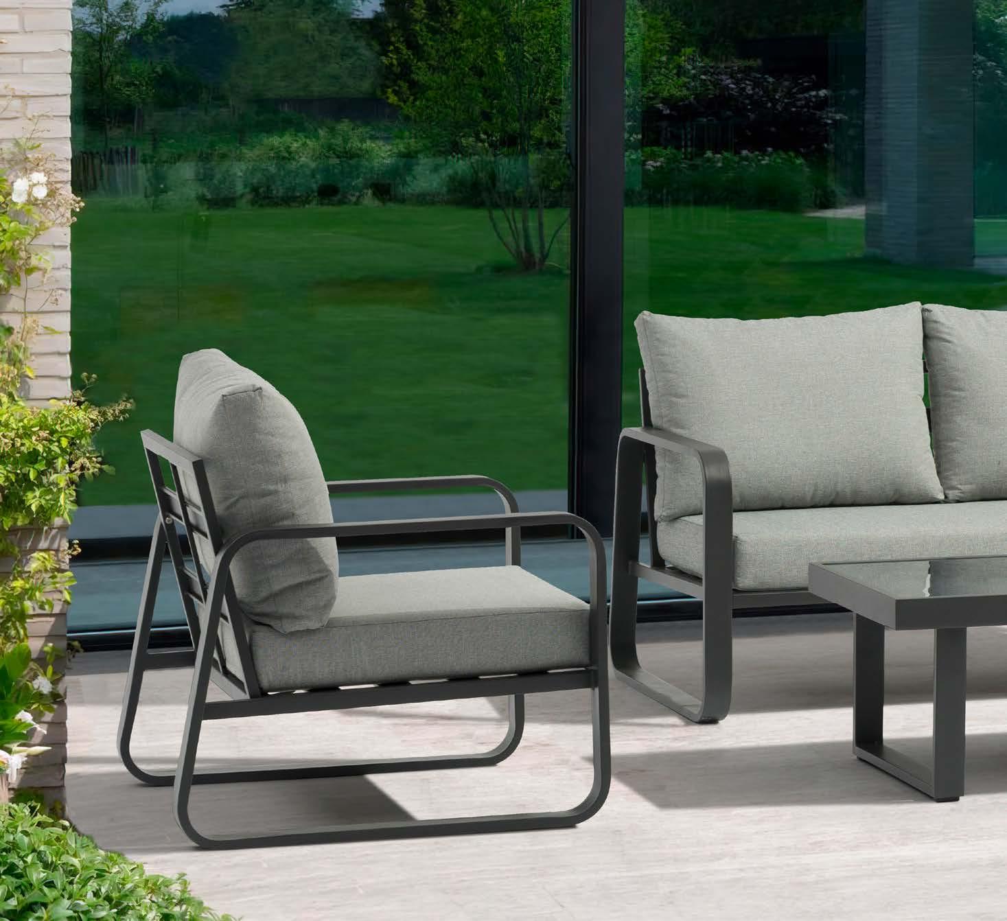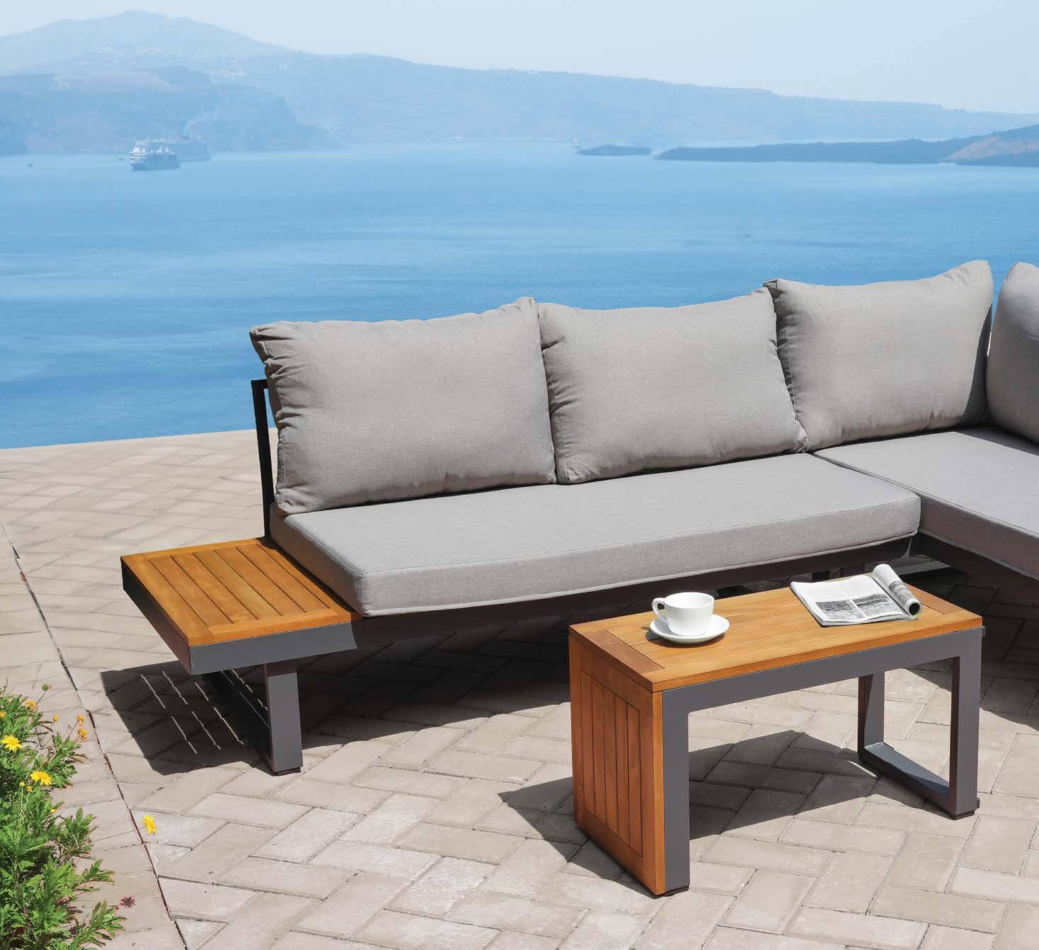 3-sed NOFI, 220x81cm, z blazinami, aluminij/tik 2-sed NOFI, 155x81cm z blazinami, aluminij/tik Fotelj NOFI, 80x81cm z blazinami, aluminij/tik Mizica NOFI, 70x120cm, aluminij/tik
