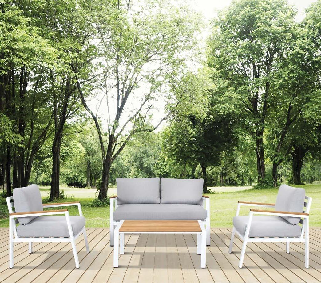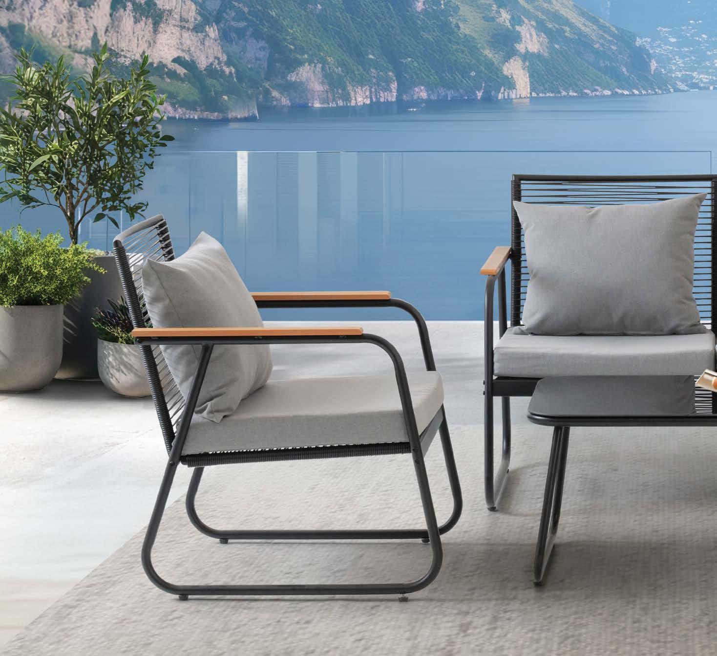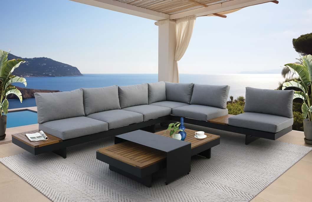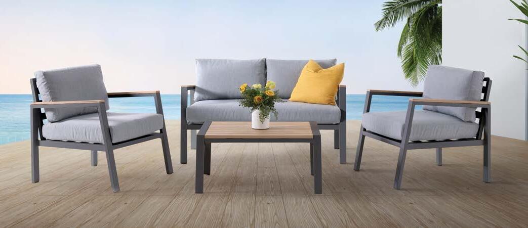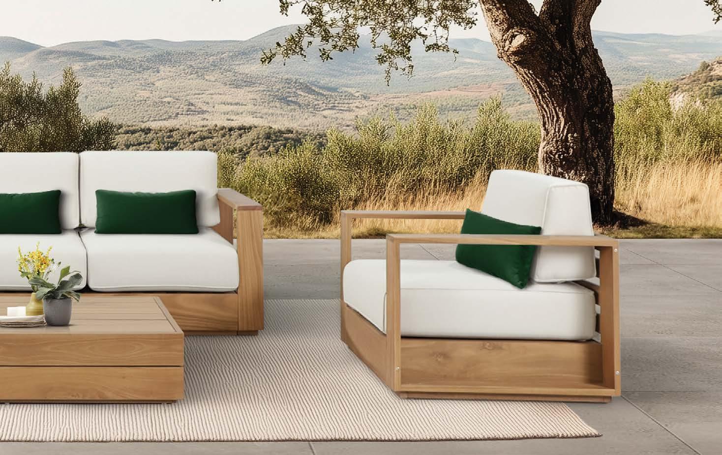 3-sed NOFI, 220x81cm, z blazinami, aluminij/tik 2-sed NOFI, 155x81cm z blazinami, aluminij/tik Fotelj NOFI, 80x81cm z blazinami, aluminij/tik Mizica NOFI, 70x120cm, aluminij/tik