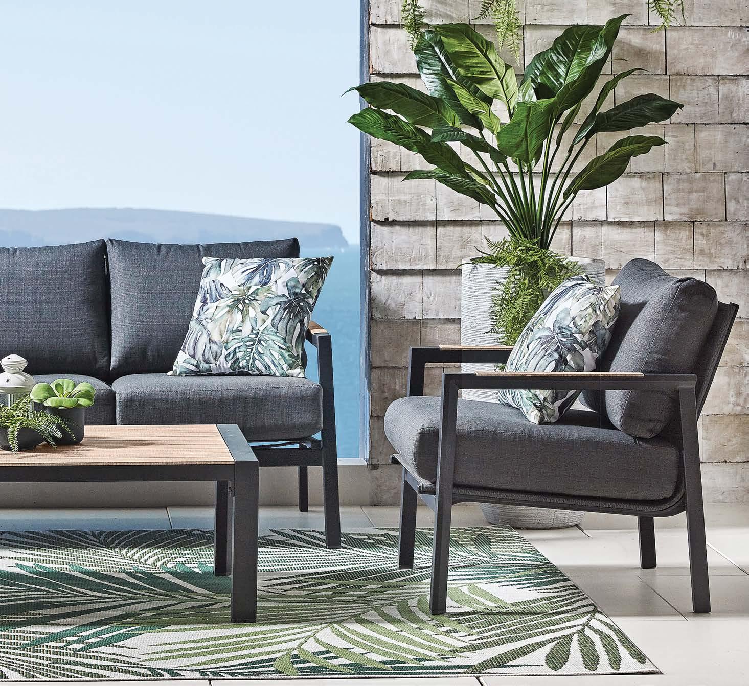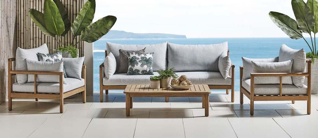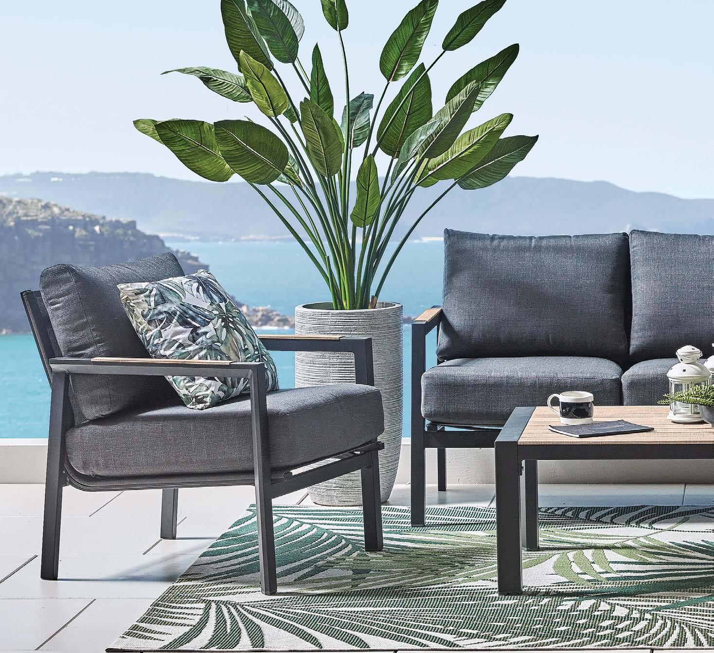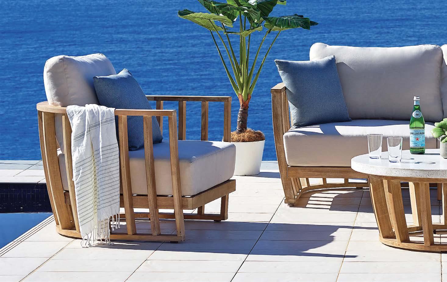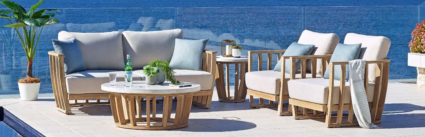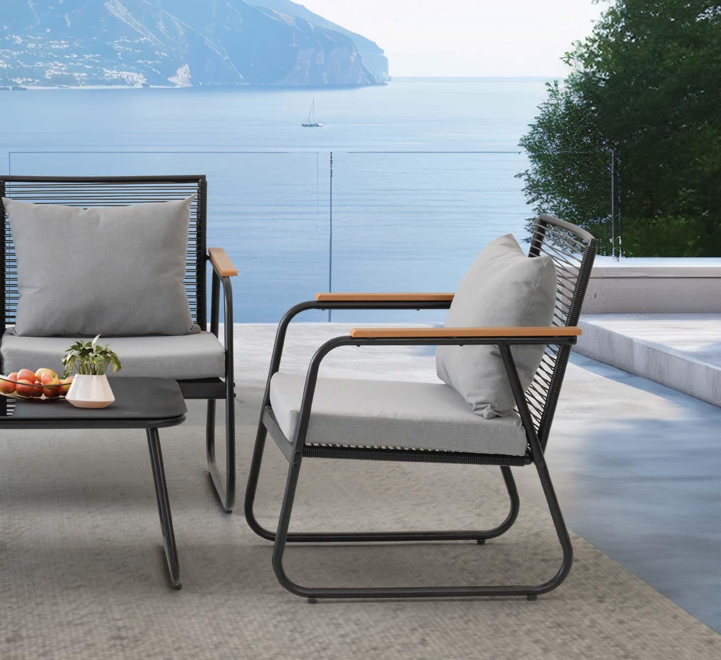 3-sed NOFI, 220x81cm, z blazinami, aluminij/tik 2-sed NOFI, 155x81cm z blazinami, aluminij/tik Fotelj NOFI, 80x81cm z blazinami, aluminij/tik Mizica NOFI, 70x120cm, aluminij/tik