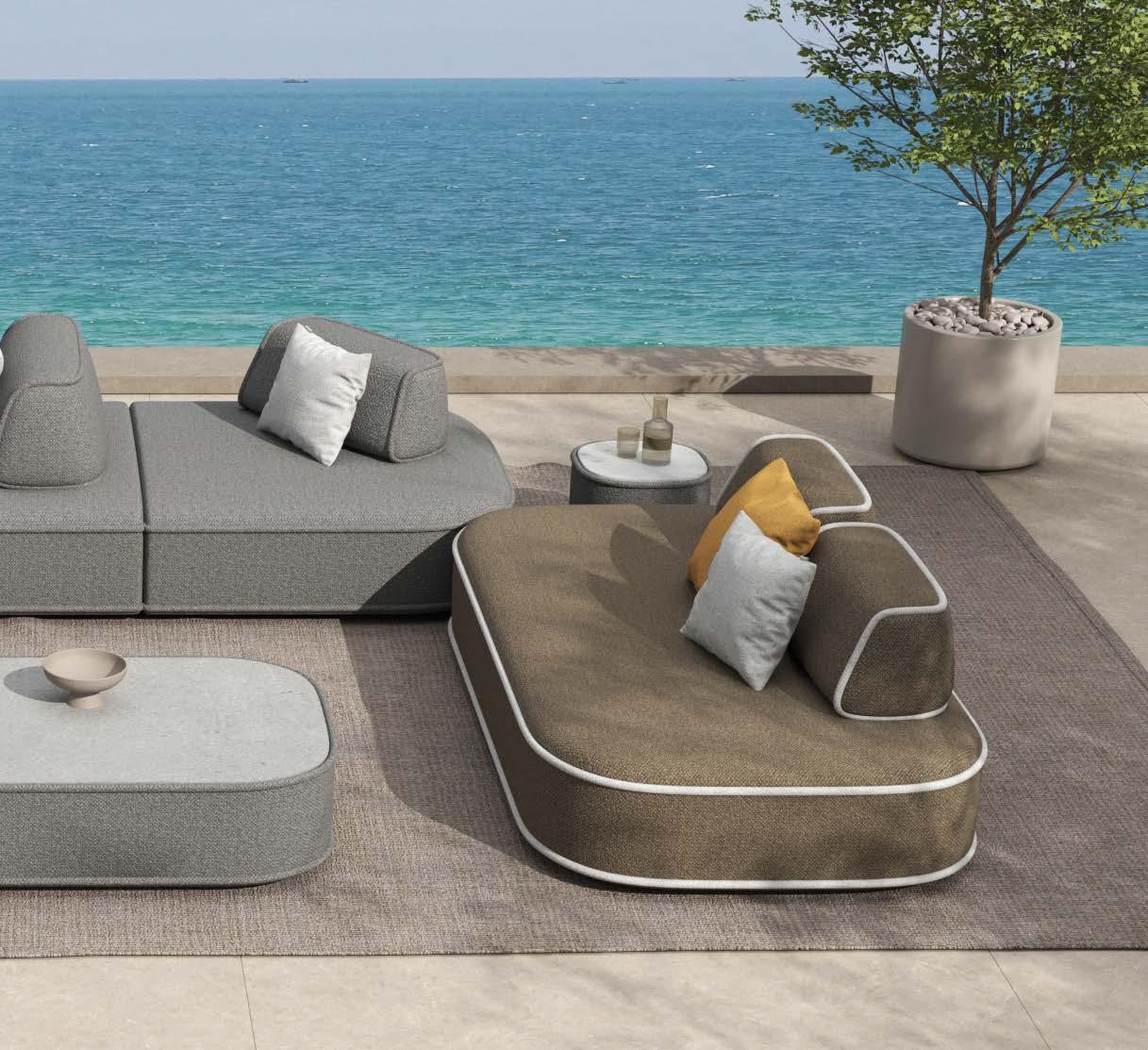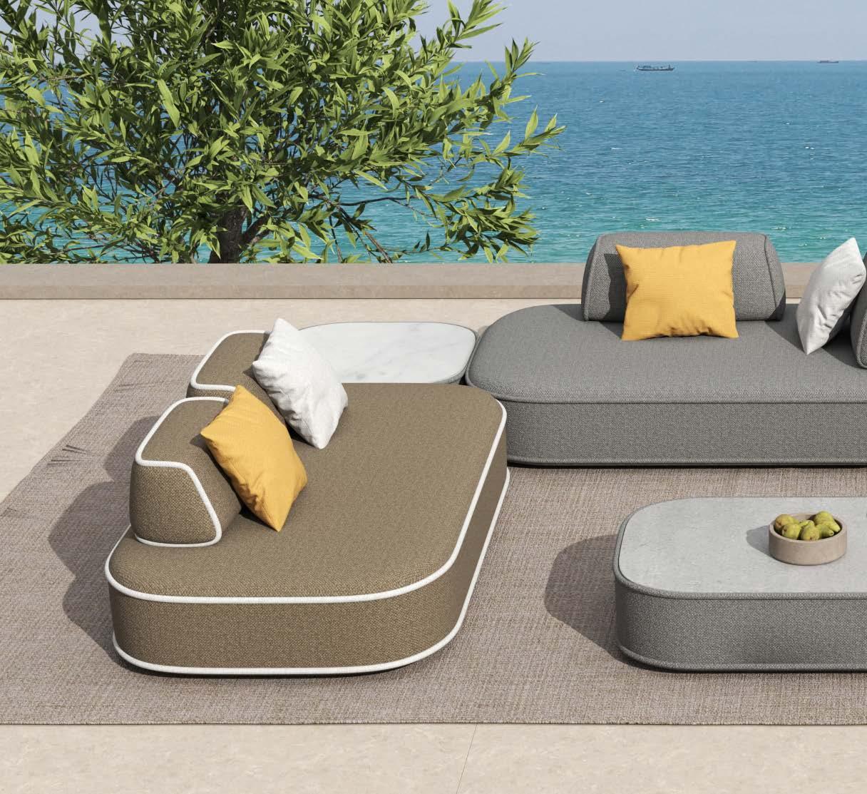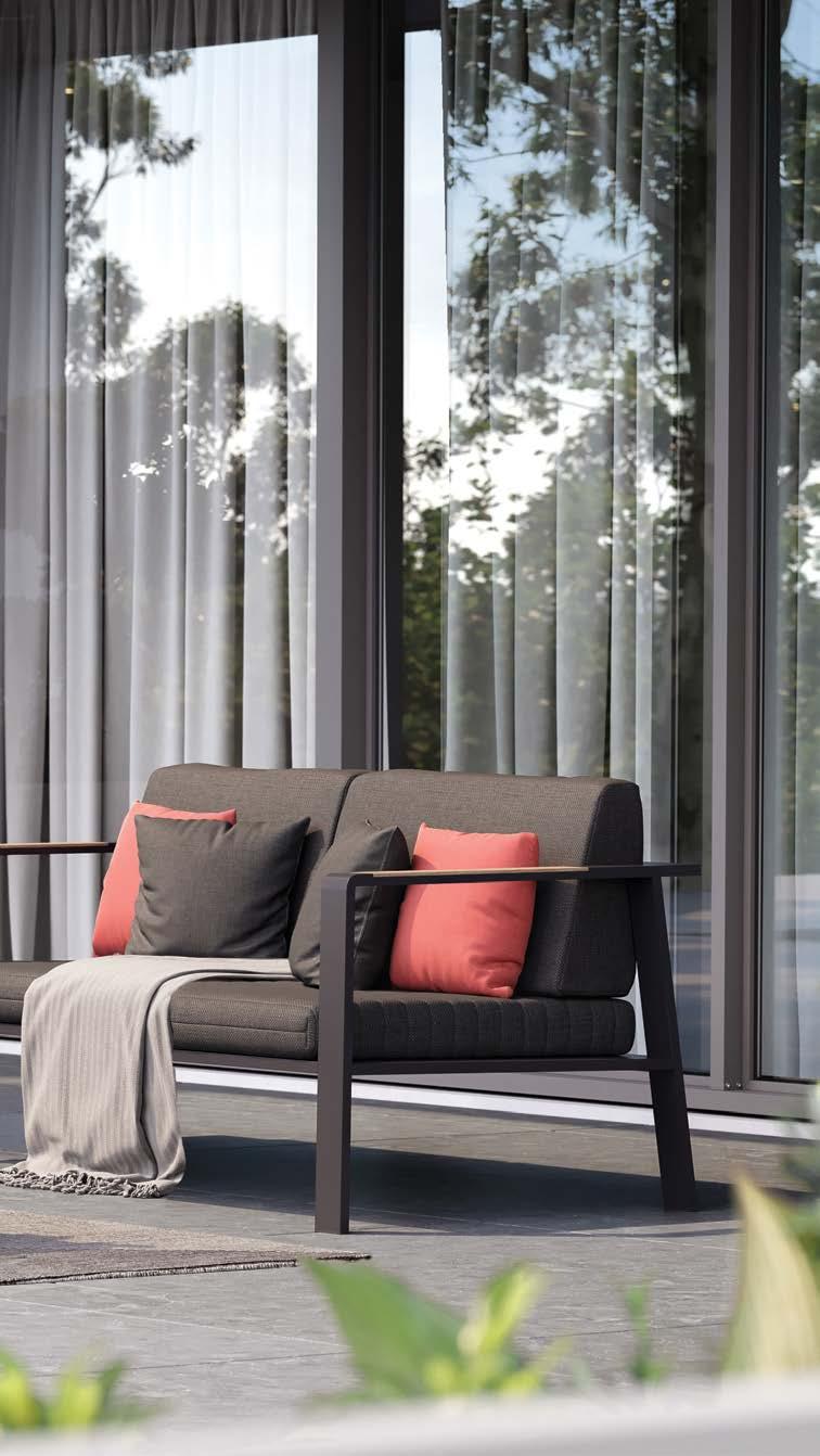 3-sed EMOTI, 207x77cm, z blazinami, aluminij/tik 2-sed EMOTI, 152x77cm, z blazinami, aluminij/tik
