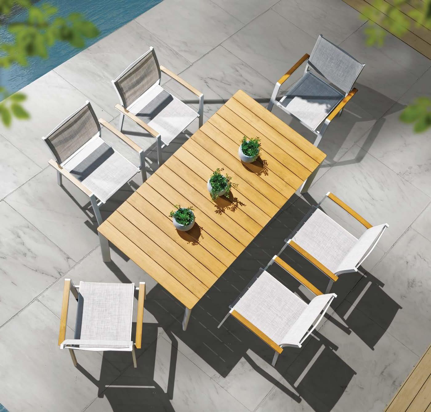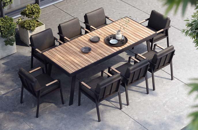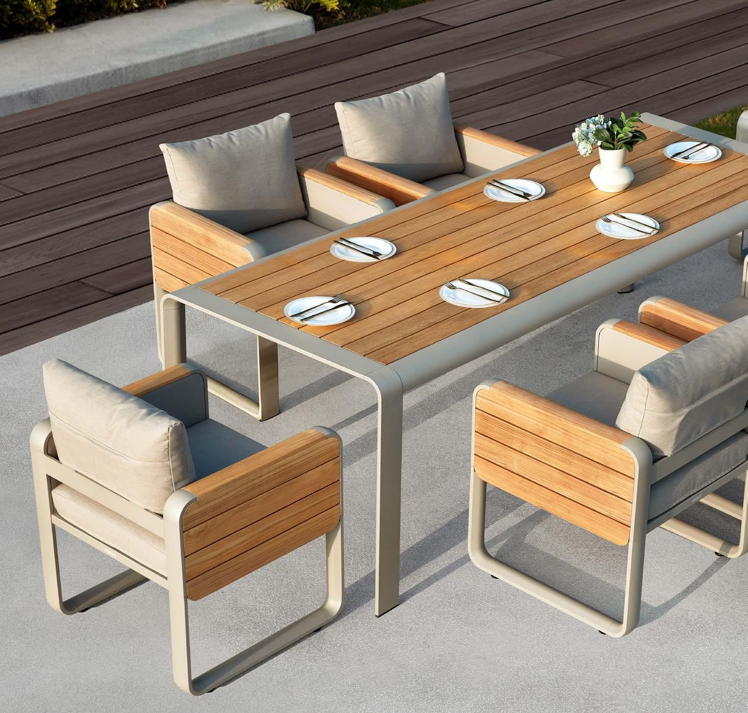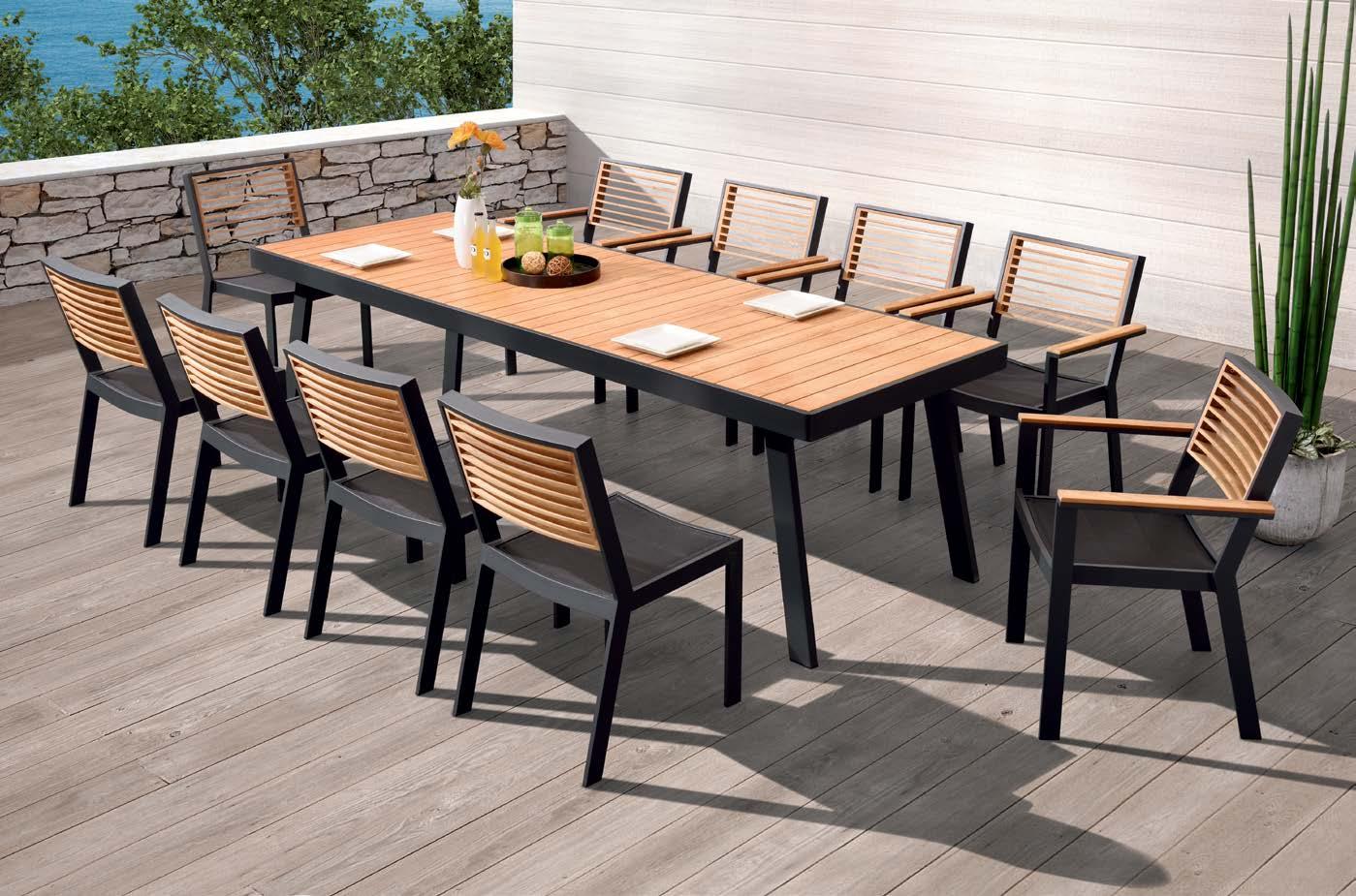 Miza WING, 105x226cm, aluminij/tik Stol WING, z blazinami, aluminij/tik