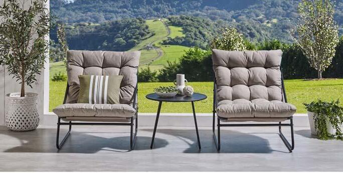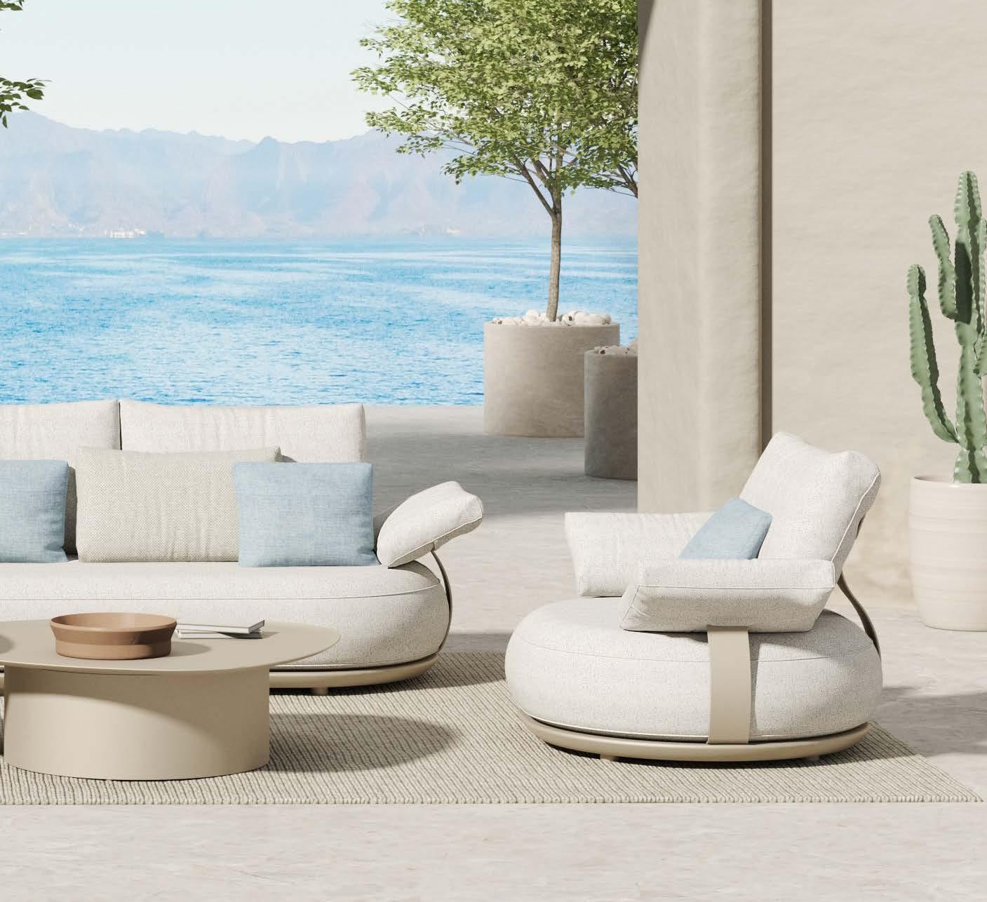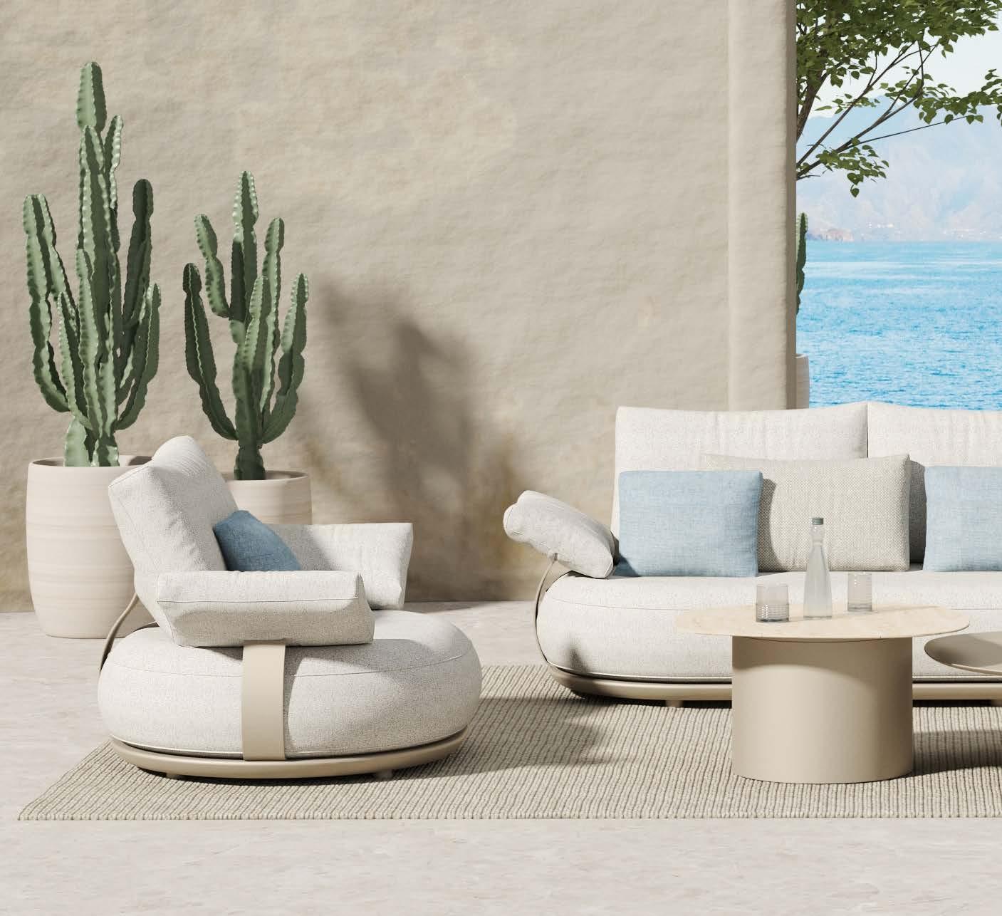 2-sed TALARA, 171x78cm, z blazinami, aluminij/vrv Fotelj TALARA, 85x78cm, z blazinami, aluminij/vrv Mizica TALARA, premer 80cm, alu.
