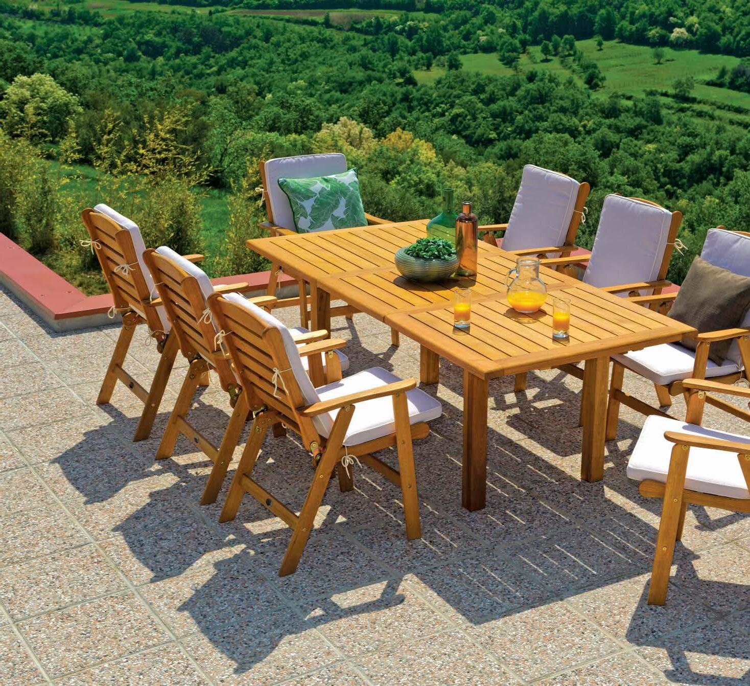 Set NOTTINGHAM, 7 kosov miza 100x230cm, 6x stol z blazinami, aluminij/tik