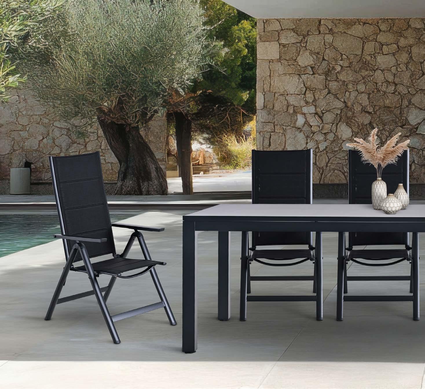 Večstopenjsko nastavljiv in zložljiv stol TIK LINE 5 stopenjsko nastavljiv, aluminij siva ali črna/tekstilen/tik
