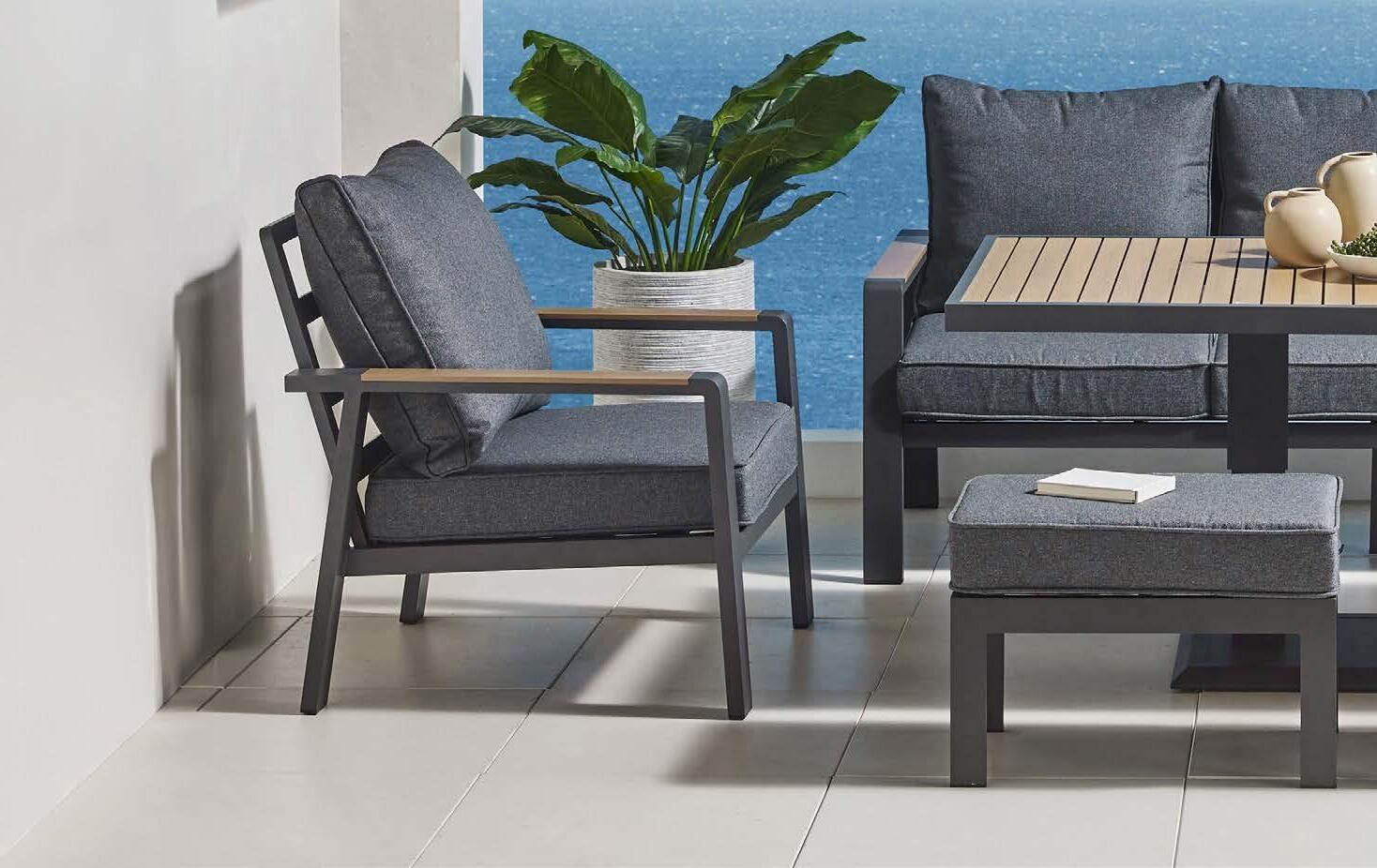 Fotelj KATANA 77x75cm, z blazinami, aluminij, antracit / tkanina Olefin