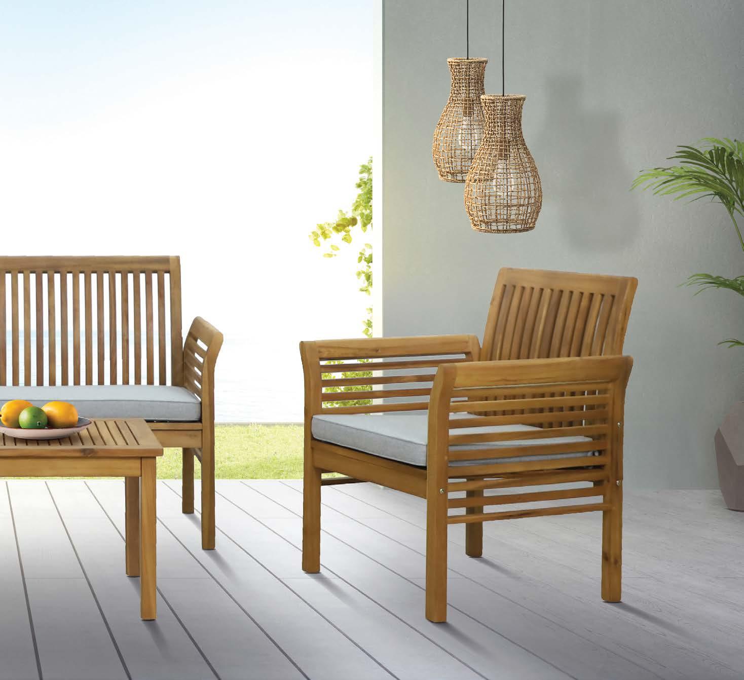 Fotelj TALARA 86x80cm, z blazinami, akacija/vrv
