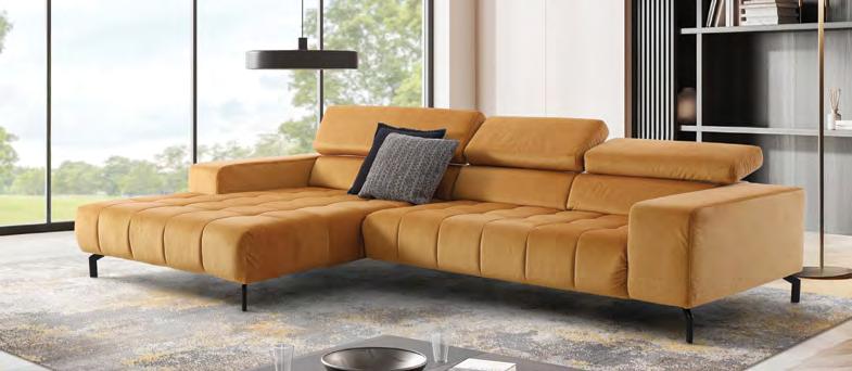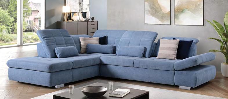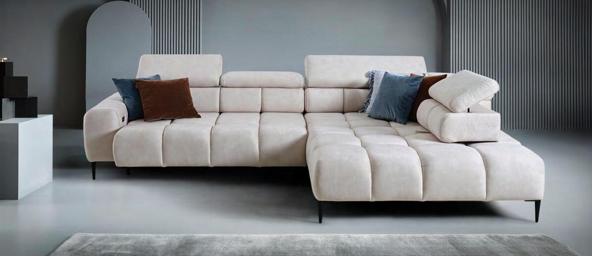 €2.790 Kotna sedežna garnitura PATTON L, vzmeteno, 300x216cm, leva ali desna postavitev, električno pomično sedišče, 1x pomično hrbtišče, 5x nastavljiv vzglavnik, material SALVADOR različne barve