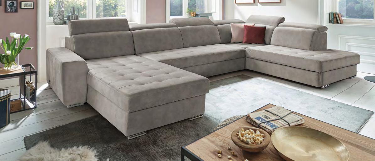 €2.790 3-sed maxi TIGA, vzmeteno, 302x102cm, 2x električno pomično sedišče, material LORIS različne barve. Dobava takoj velja za bež ali zeleno barvo.