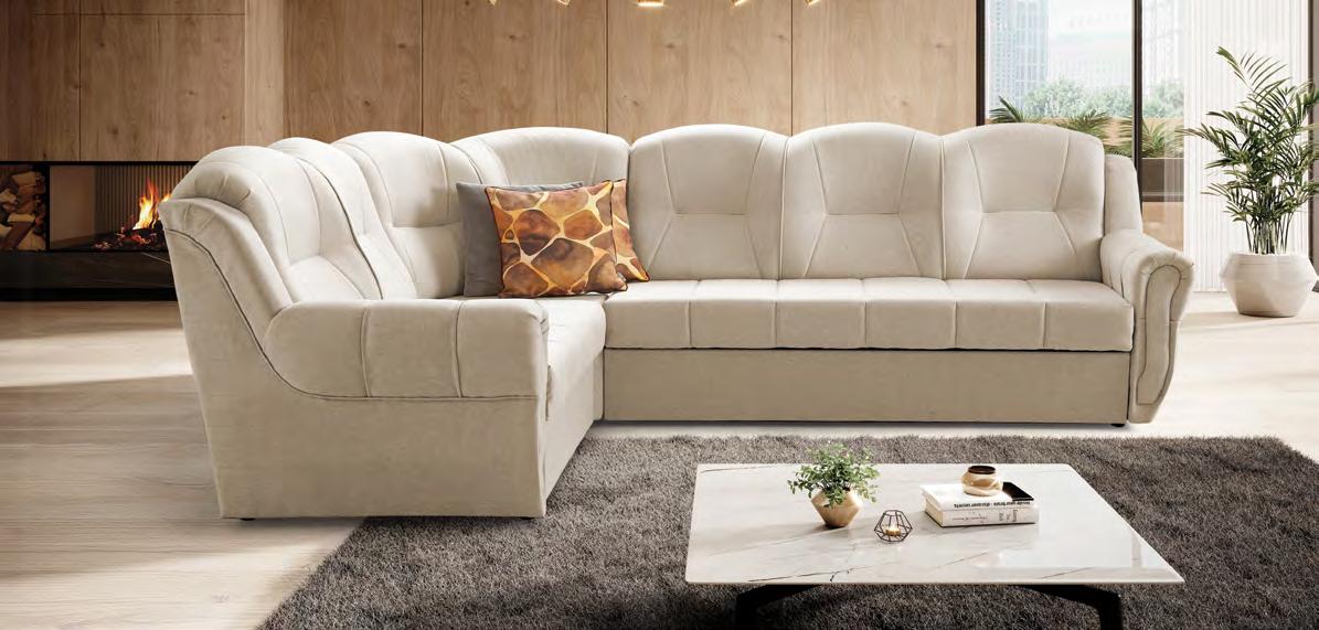 €835 Kotna sedežna garnitura RIVER, 226x276cm, leva ali desna postavitev, ležišče, material COMB 101 bež, 104 mocca ali 135 olivno zelena