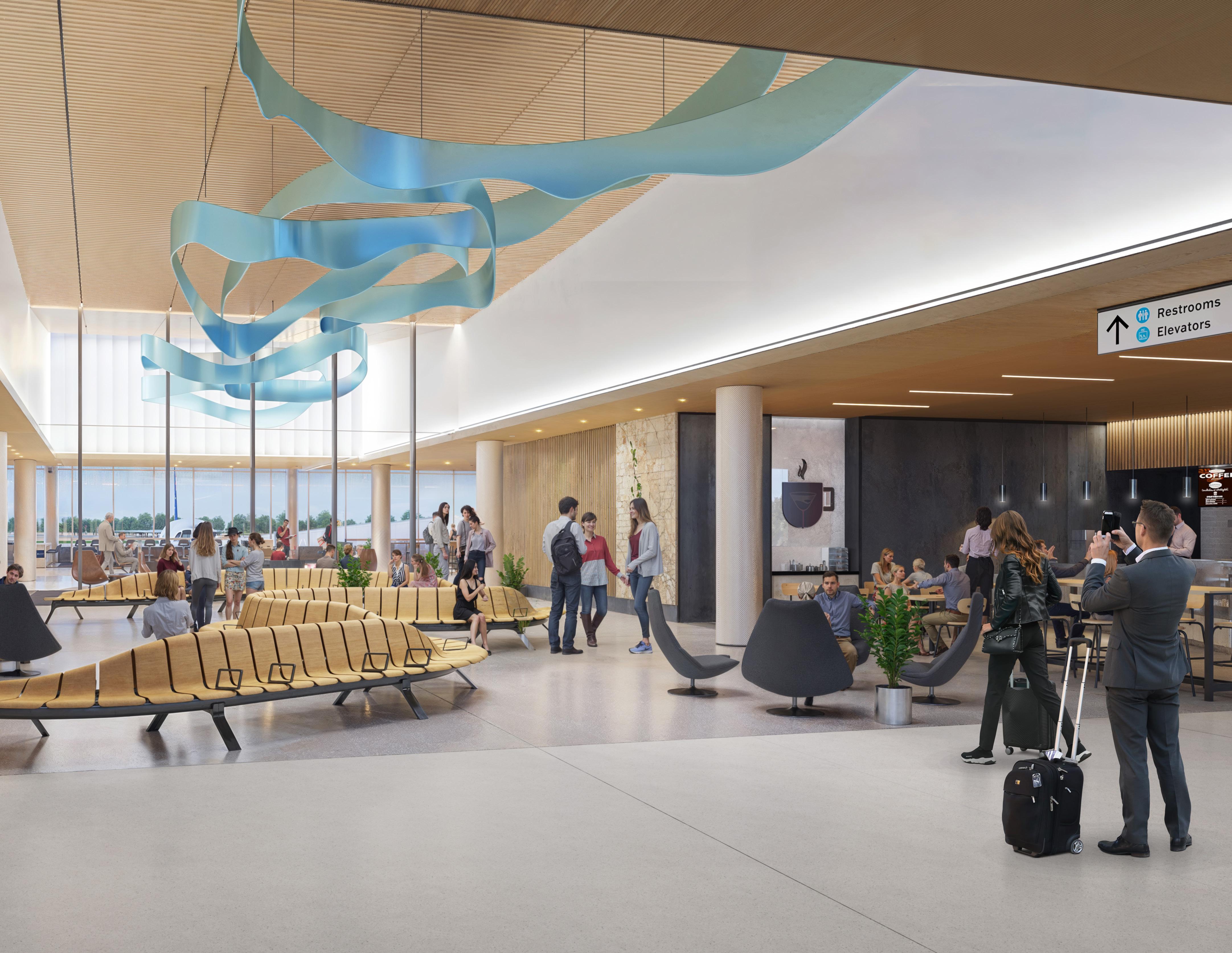 HNTB is the lead design firm and will oversee all design services, including the new airside terminal, airfield design, main terminal ticketing area modifications, the shuttle guideway and station, and civil utilities.