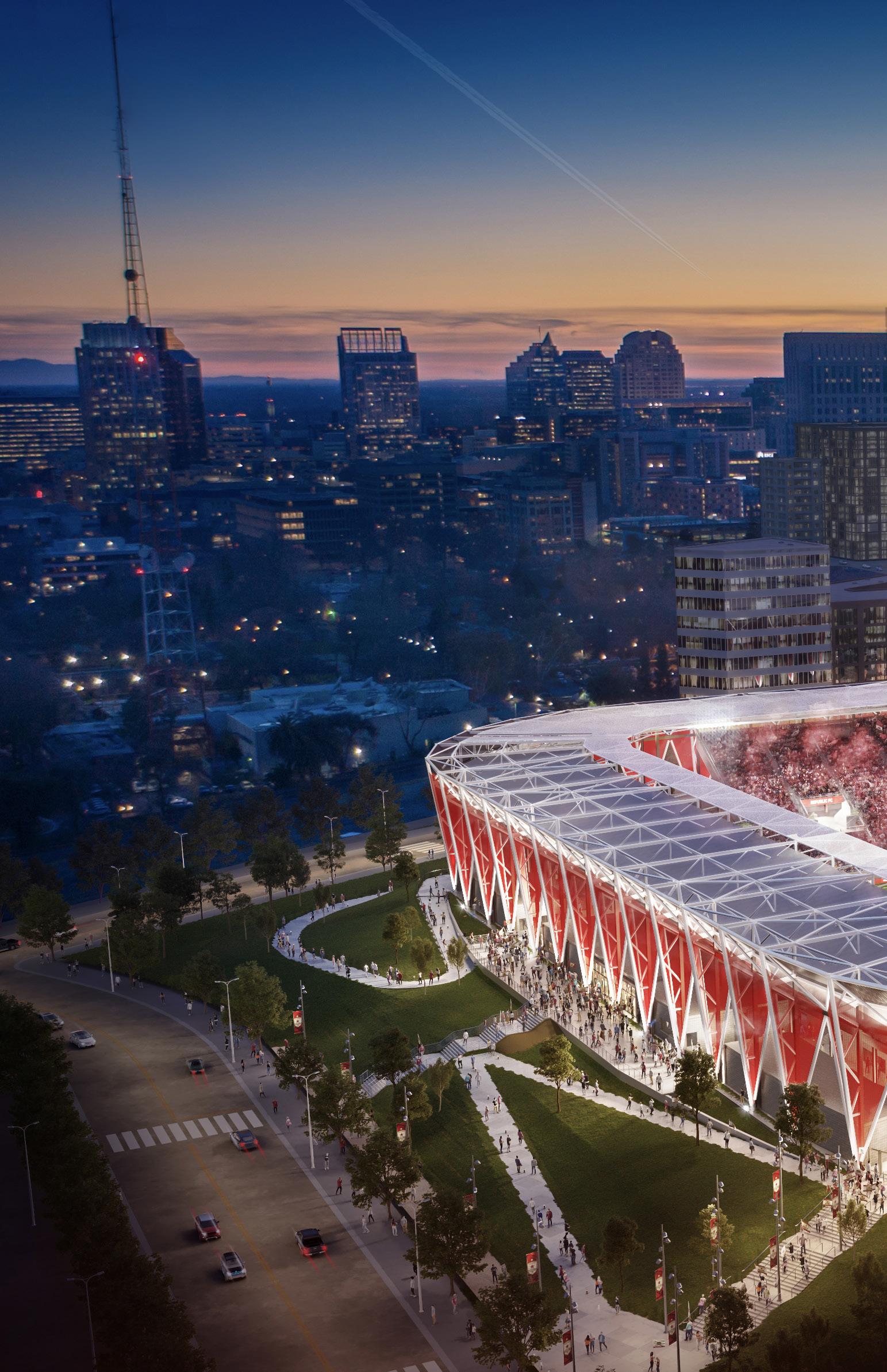 To optimize the design and reduce construction costs, the team used a single concourse design, an on-grade field configuration and a simple modular exterior design that still provides the stadium with an iconic look that reflects the spirit of Sacramento, highlighting a distinctive civic identity and clear, engaging design. Showcasing the team’s brand, exterior appearance and building structure are all based on Republic FC’s logo: the star. The stadium also pays homage to Sacramento’s urban forests and famed canopies. Site and landscape design, along with local food vendors and concessions, will pay homage to Sacramento’s agricultural heritage.