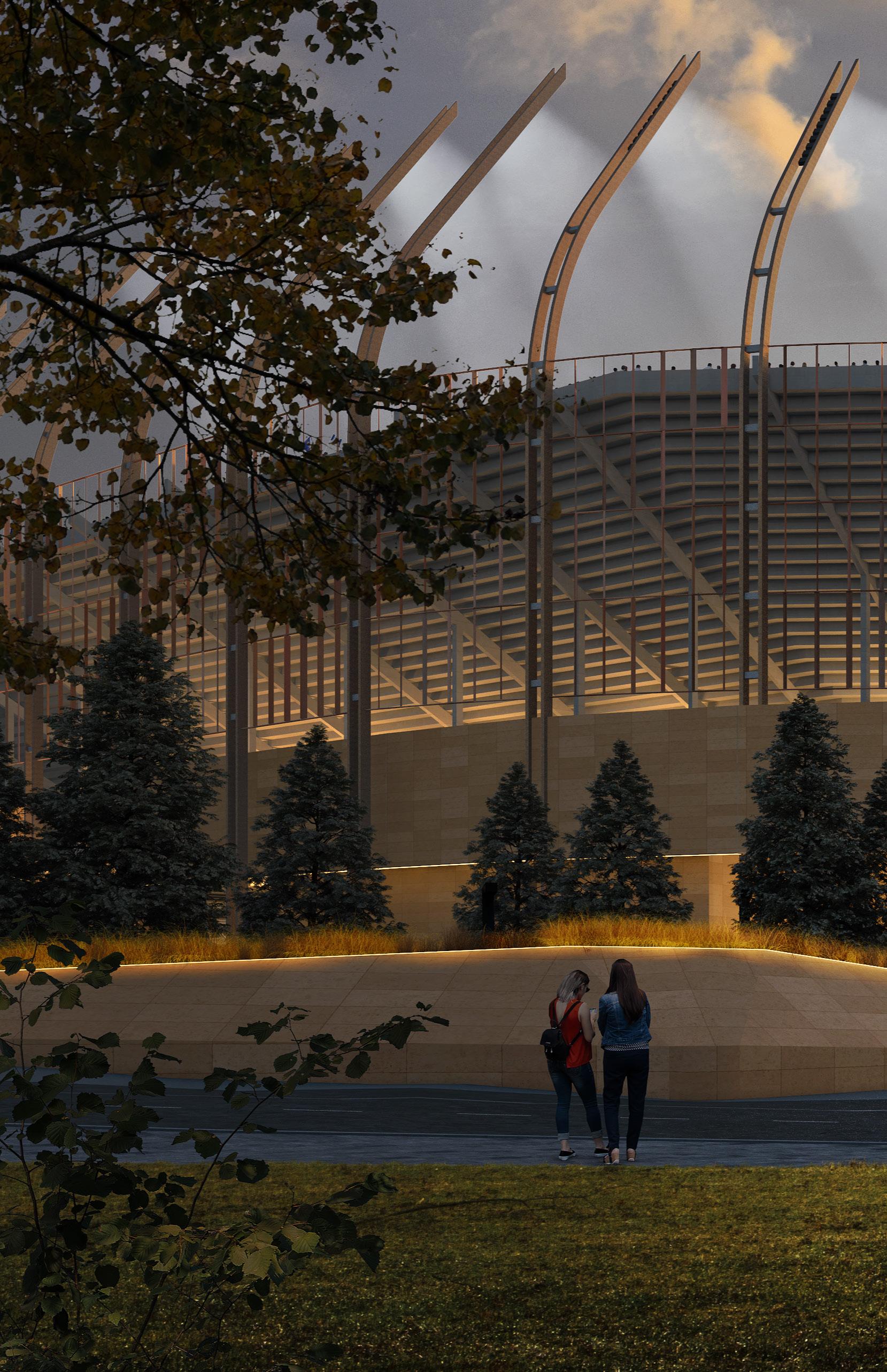 The stadium will also include multi-use spaces to augment conference facilities and bring the public together. Nestled into the landscape, the design creates an indoor-outdoor interconnectedness that elevates the authenticity of the fan experience.