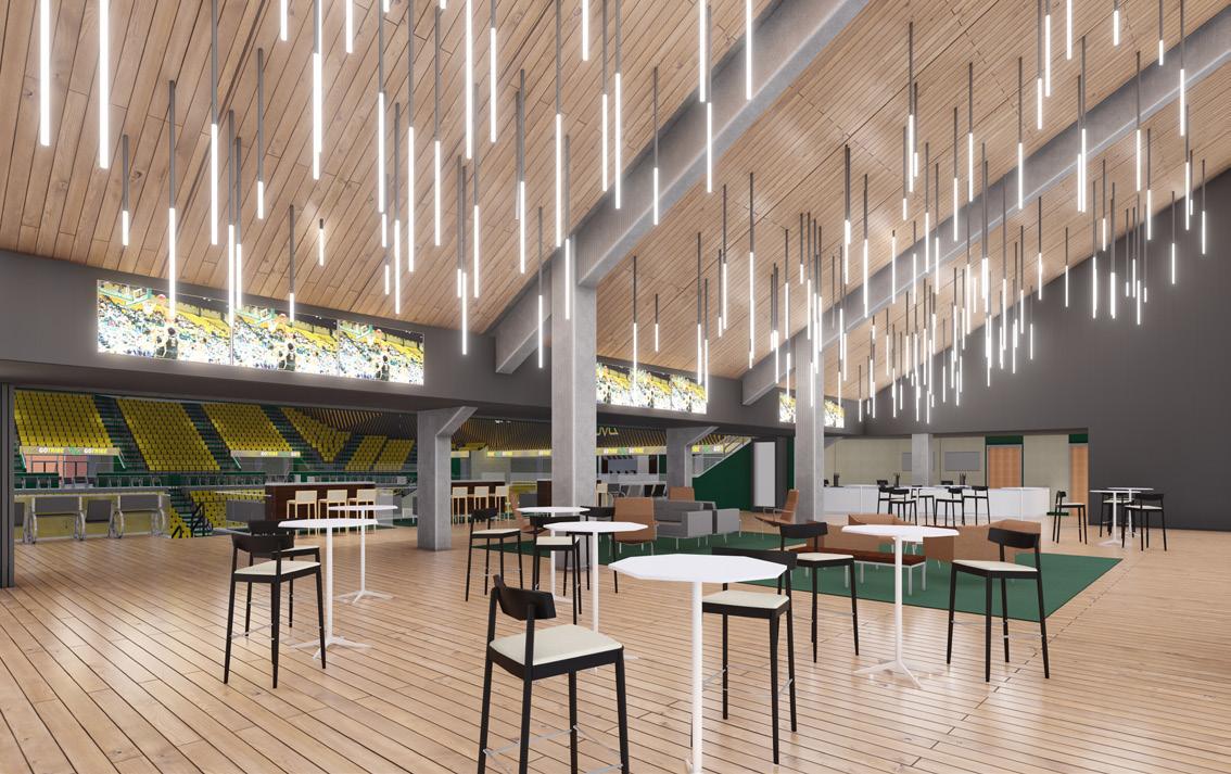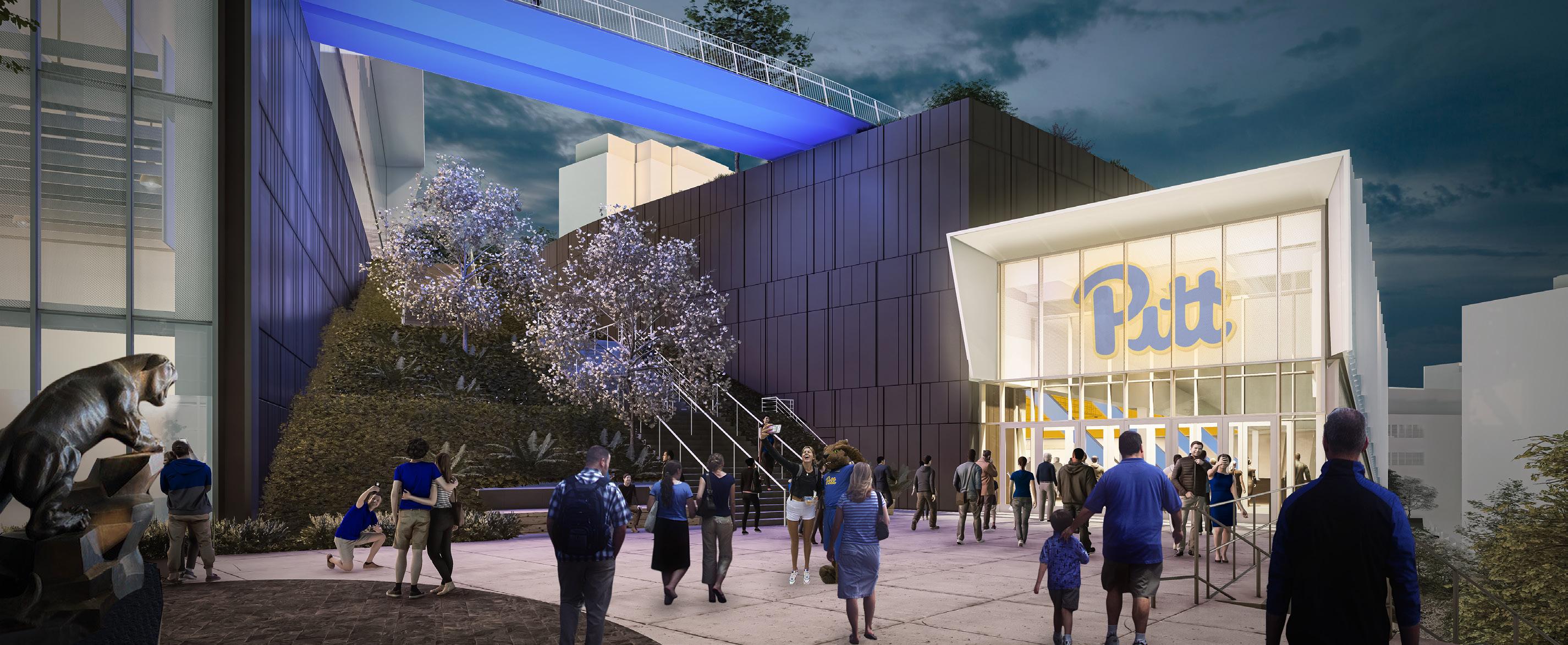 New facilities to be built in the coming years include: (1) 3,000-seat arena for gymnastics, volleyball, wrestling and other events; (2) eightlane, 300-meter indoor track for the men’s and women’s programs; (3) cutting-edge athletic performance center for strength and conditioning, sports medicine, nutrition and mental well-being needs for 16 of Pitt’s 19 intercollegiate athletics programs; and (4) dedicated practice facilities and locker rooms for Women’s Gymnastics, Women’s Volleyball, Men’s Wrestling and the Spirit Team.