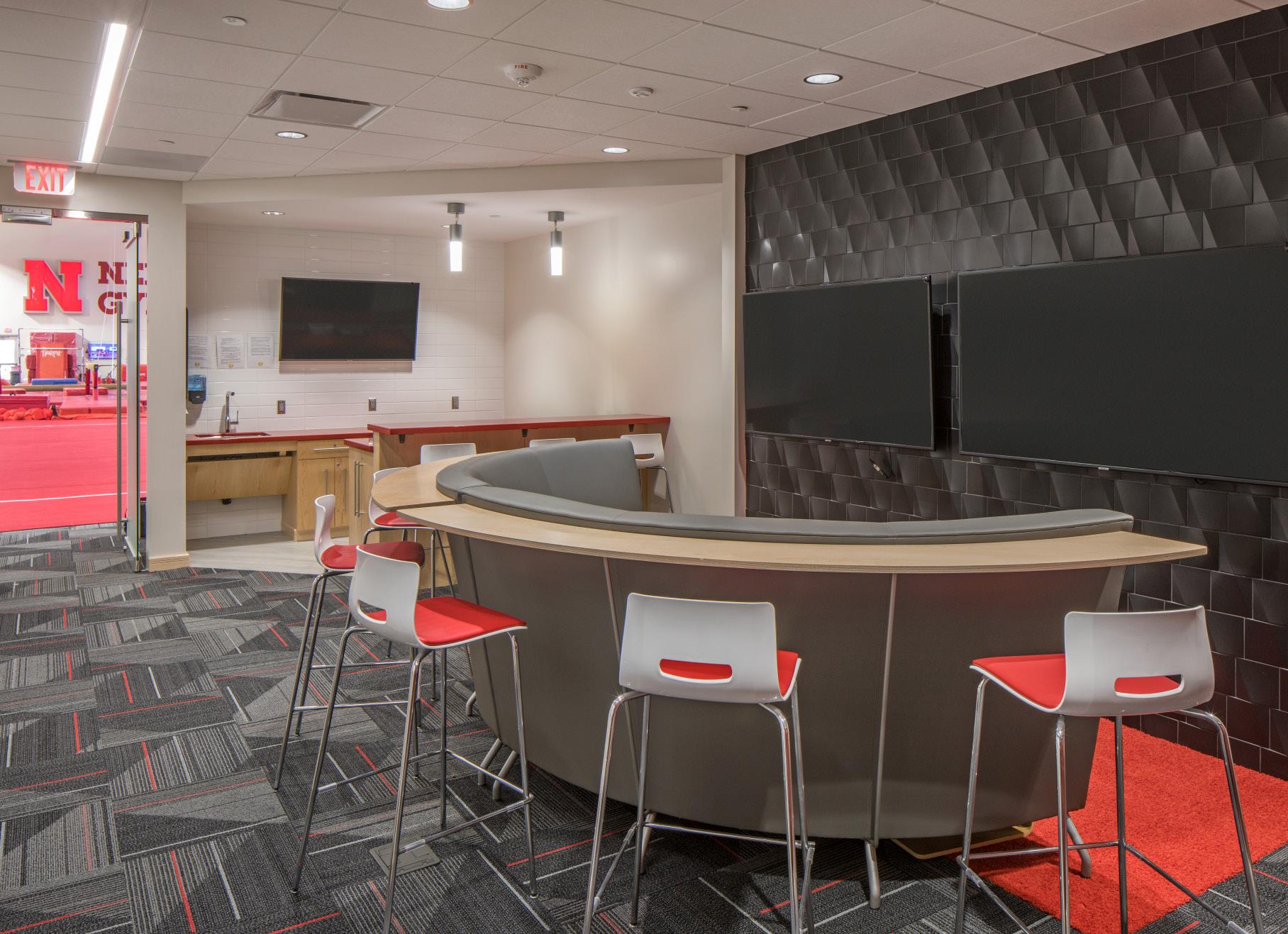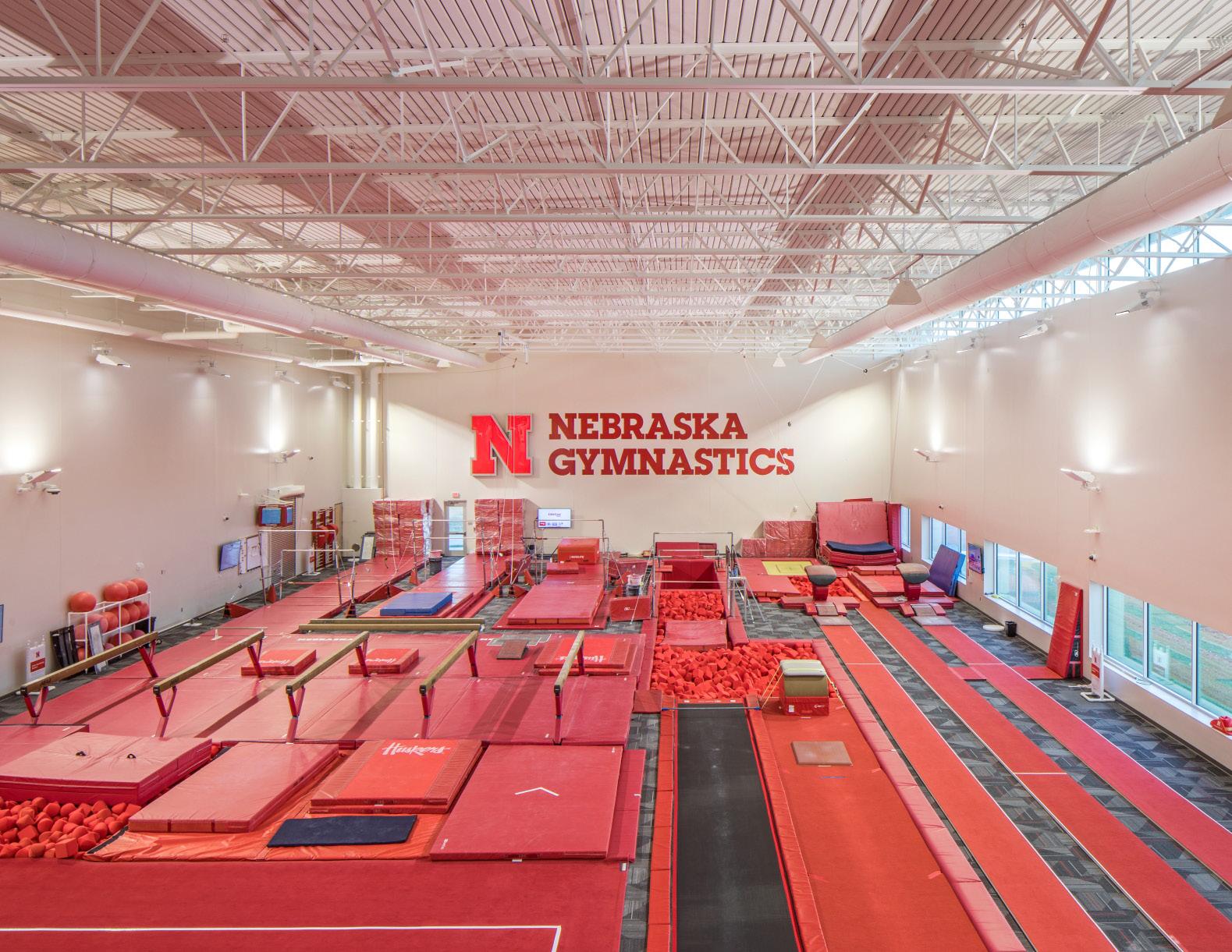 HNTB served as sports architect for the design of a new 46,000-SF gymnastics complex to support UNL’s Women’s and Men’s Gymnastics team. The facility features two modern 13,000-SF high bay training gyms with equipment laid out to maximize efficiency and flow for both teams while ensuring proper spacing for optimal student-athlete safety. Additionally, the facility includes: (1) team rooms, (2) locker rooms, (3) equipment storage areas, (4) training areas, (5) offices, (6) observation space and (7) shared conference/meeting room.