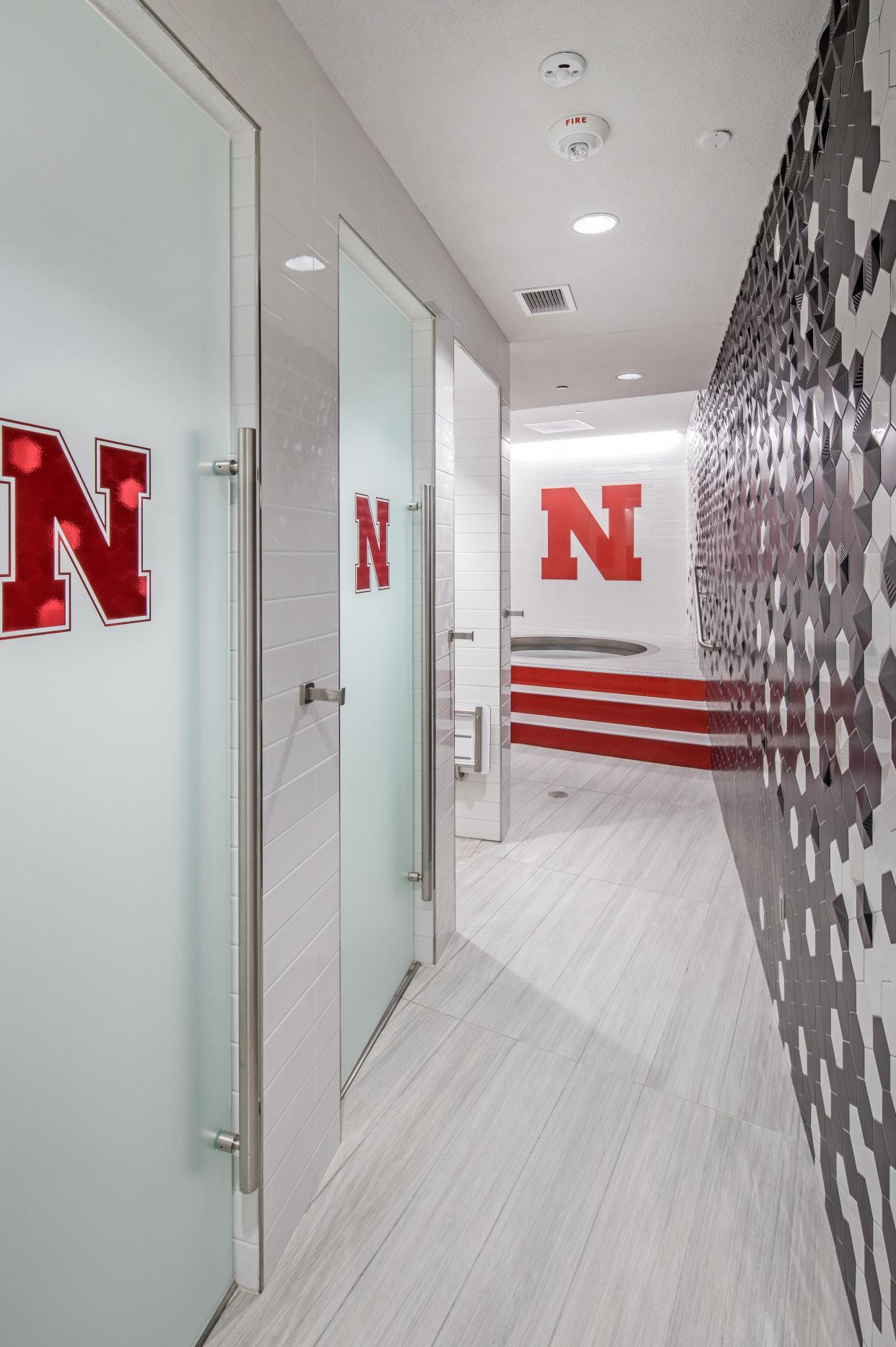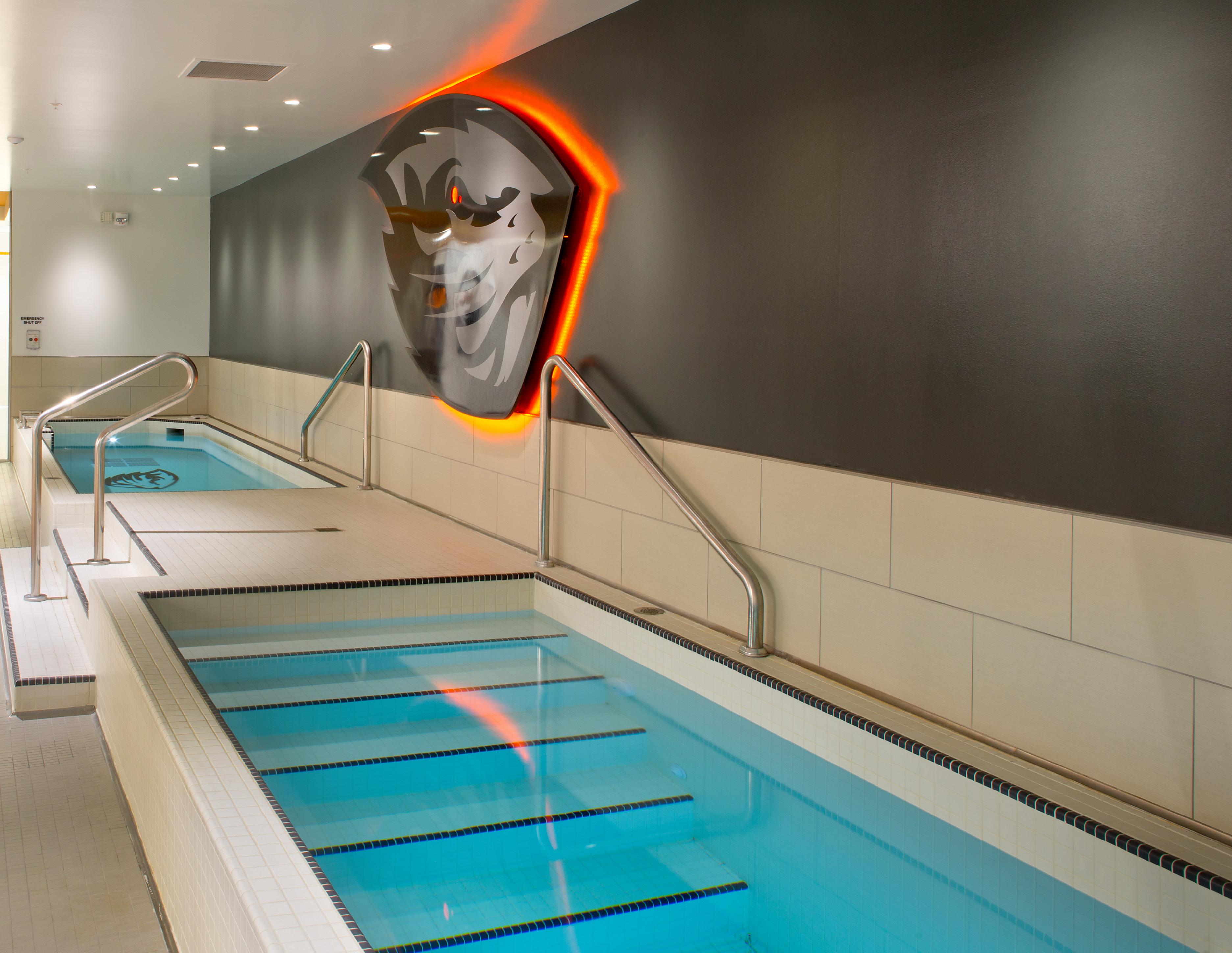 Player recovery is a point of emphasis at Michigan. HNTB created a space that allows for recovery to begin the moment the players finish practice. Wolverine players exit the practice field and enter an equipment drop-off room, shower and immediately go into a 100-footlong cold-water recovery pool.