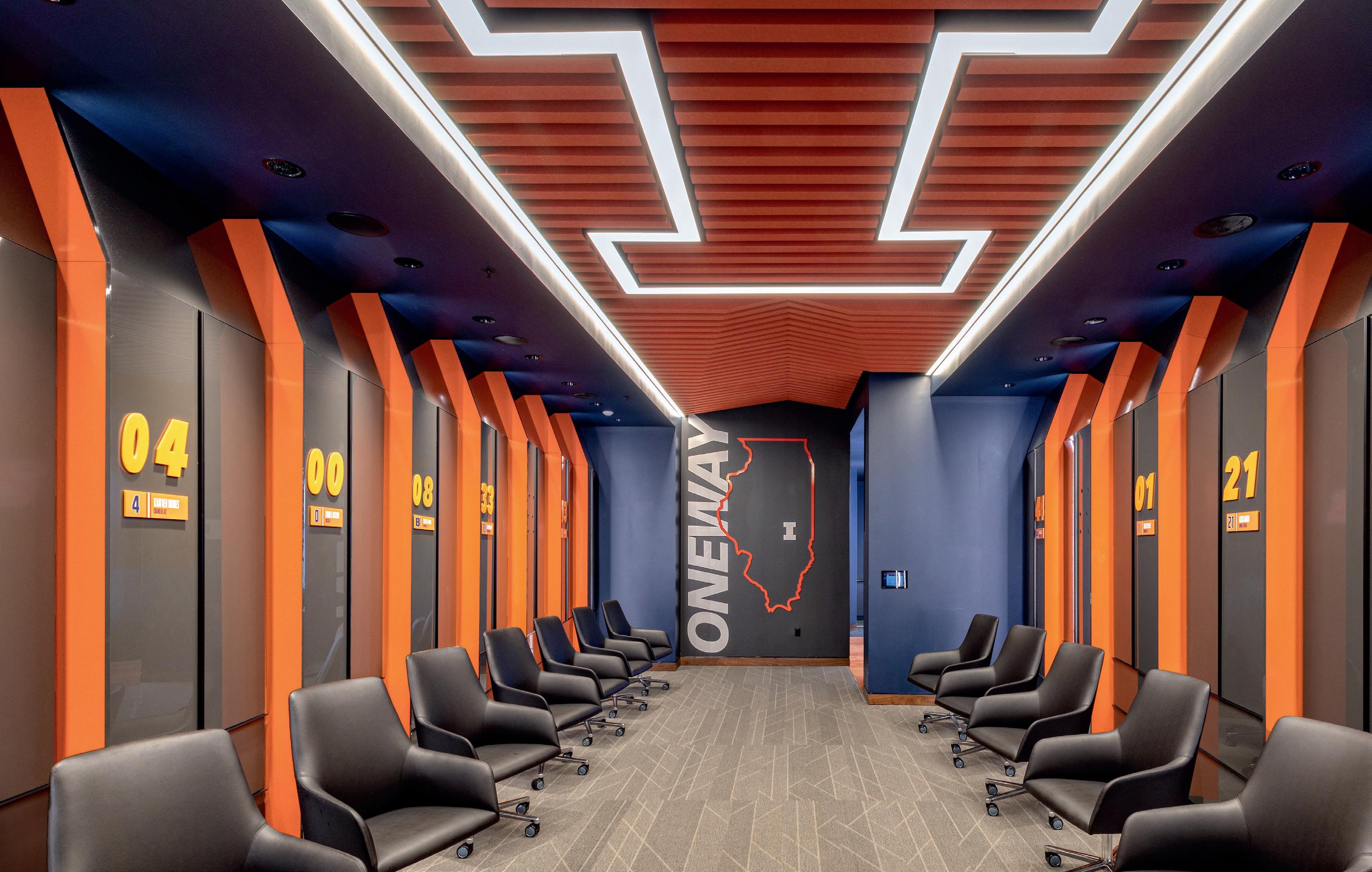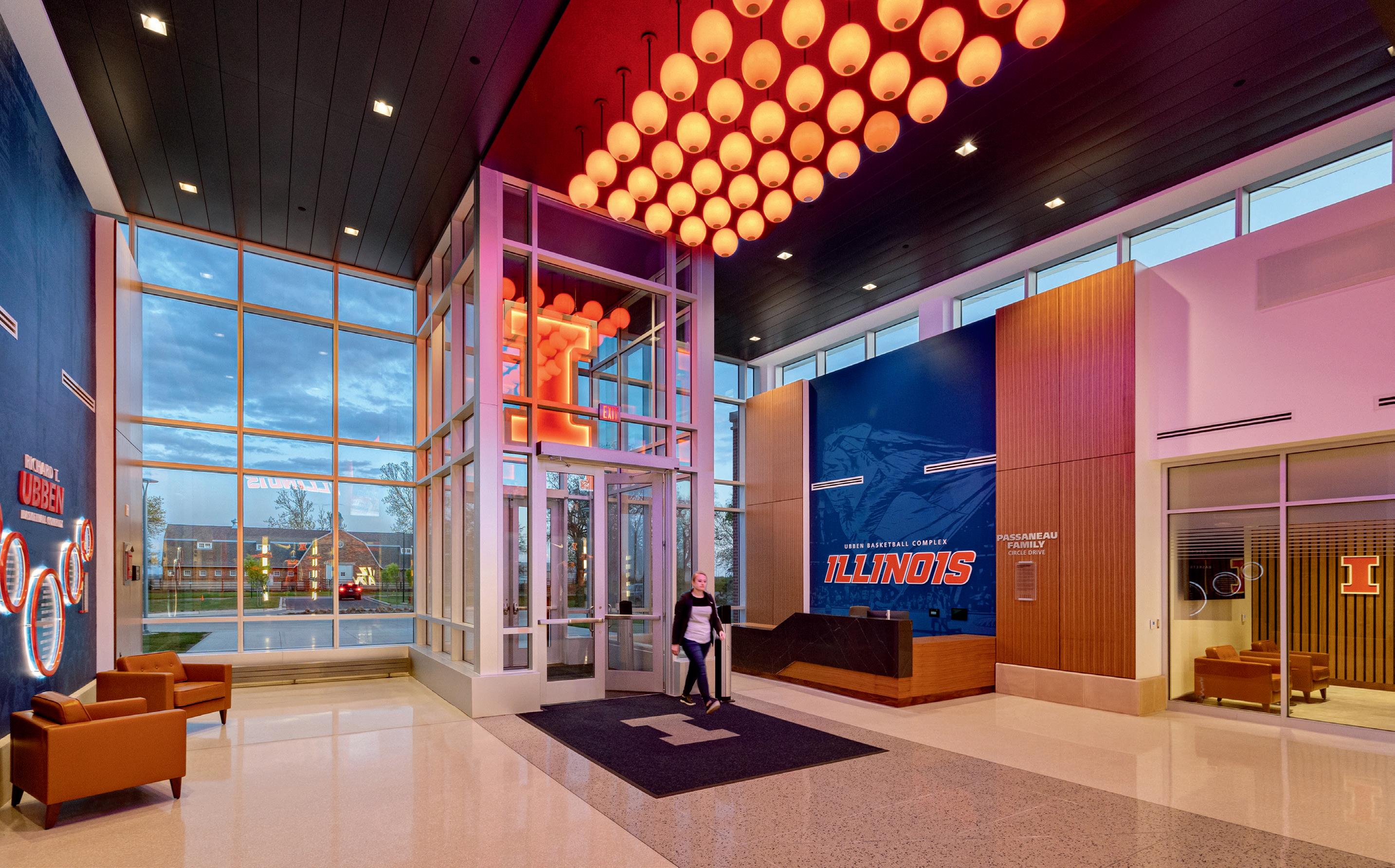 “One of the university’s goals was to create a true front door for Illinois basketball — an entrance that immediately embodies the pride, rich history and championship mindset of the program,” said Vito Privitera, design director at HNTB. “From the moment you step inside, you feel the legacy of those who paved the way and the high expectations embraced by every student-athlete who walks these halls.”
