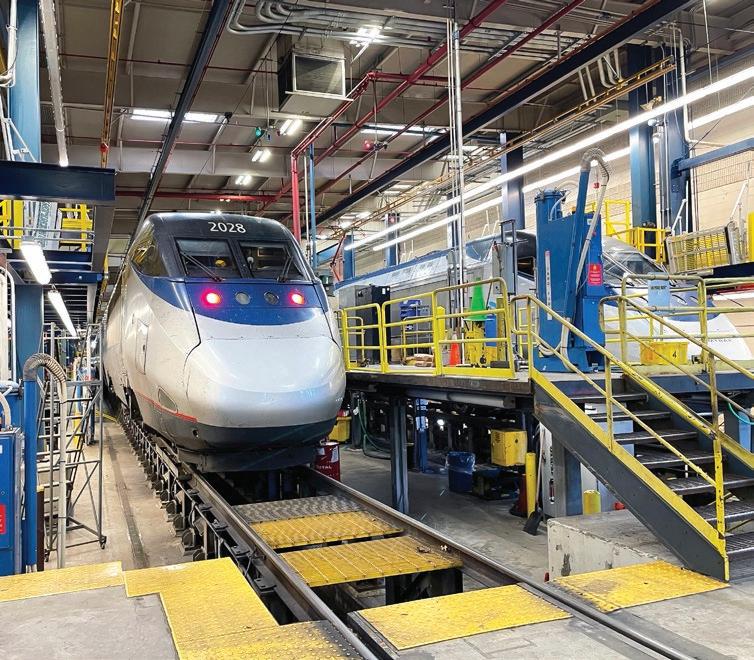 The expanded facility accommodates all associated power and overhead catenary system modifications, a 50-ton Macton drop table and crane equipment for change-outs, and repair and storage of Acela trucks and wheel sets.