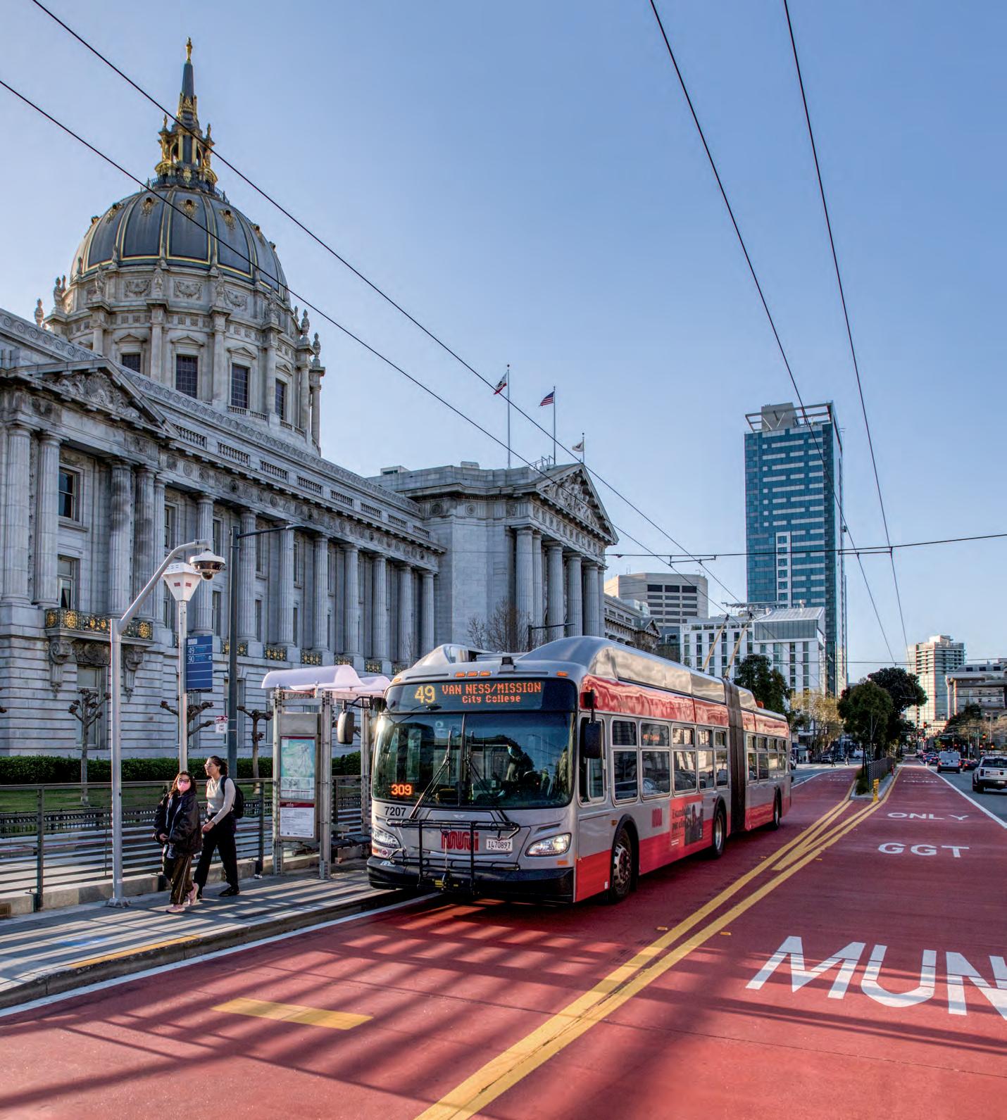 THE SAN FRANCISCO MUNICIPAL TRANSPORTATION AGENCY (SFMTA) WAS established in 1999 by a voter mandate. It aggregated several San Francisco city agencies, assuming oversight of public transit, as well as bicycling, paratransit, parking, traffic, walking and taxis and is now the nation’s seventh-largest transit system.