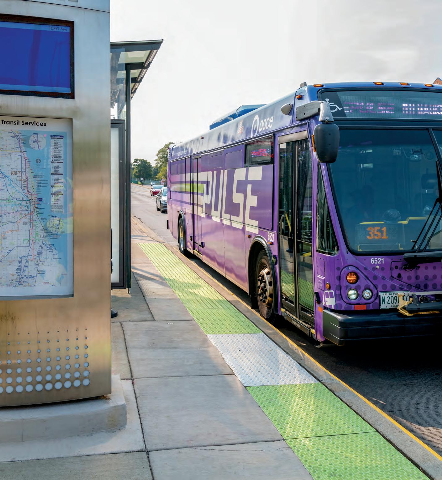 The bus lanes were built after the completion of curbto-curb utility replacements. Construction presented its own challenges, particularly with limited access to constrained sites along the corridor that were impacted by traffic control, limited work hours, ingress/egress, public safety and other concerns. ANGLE-DOUBLE-RIGHT