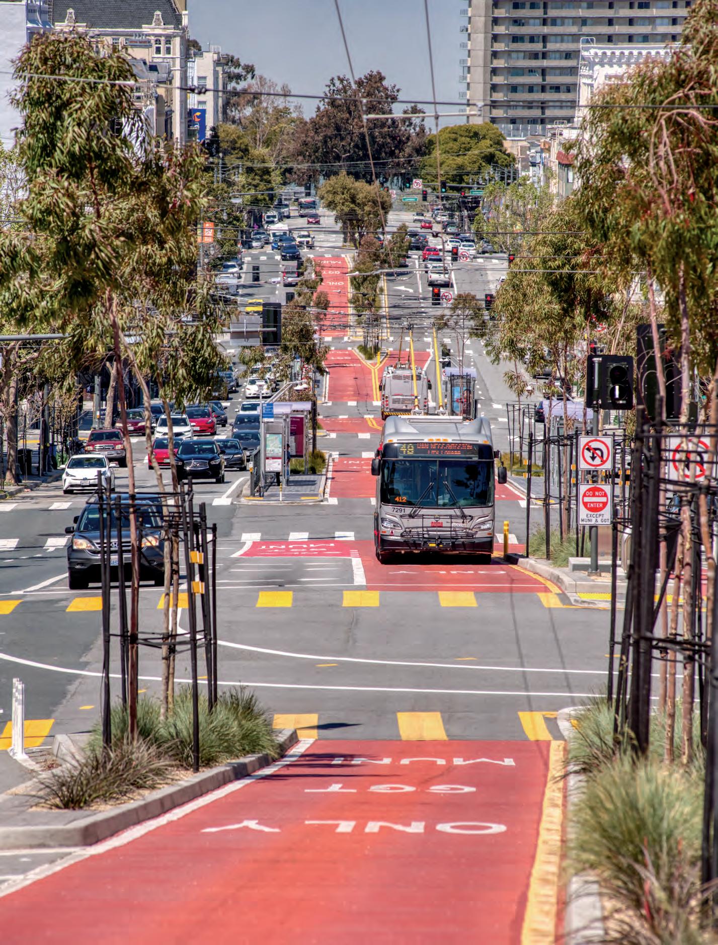 The Van Ness system is exceeding pre-pandemic ridership projections. Besides carrying thousands of commuters through the civic heart of San Francisco, Van Ness has reconnected communities and maximized the value of this long-awaited opportunity, while extending the expected useful life of the roadway and transit system.
