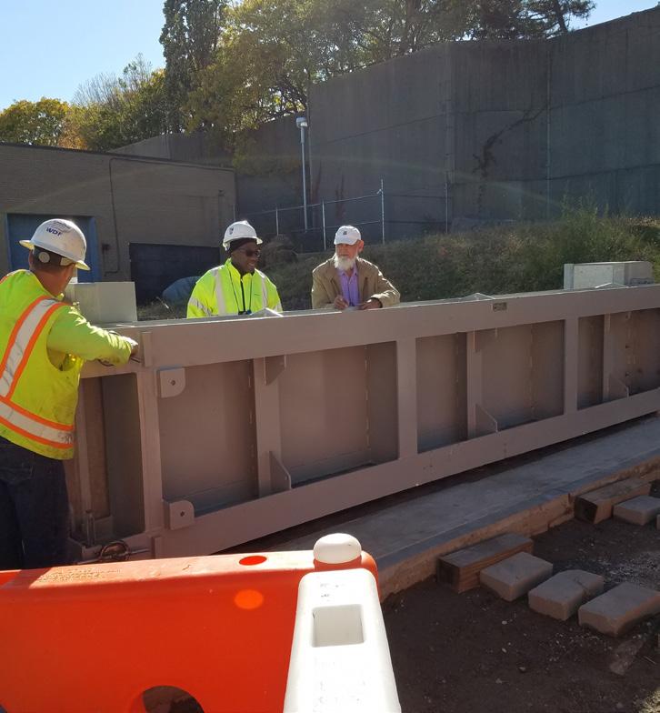 alternatives, and HNTB developed an innovative “filler beam” solution for a replacement single span structure that used common pieces of steel, did not require connections (similar to the New York State Department of Transportation integral abutments), increased the hydraulics of the crossing and worked for E-80 vehicles and the American Railway Engineering and Maintenance-ofWay Association provisions. The permanent replacement structure for Track 3 was in place within six weeks of procuring an emergency contractor.