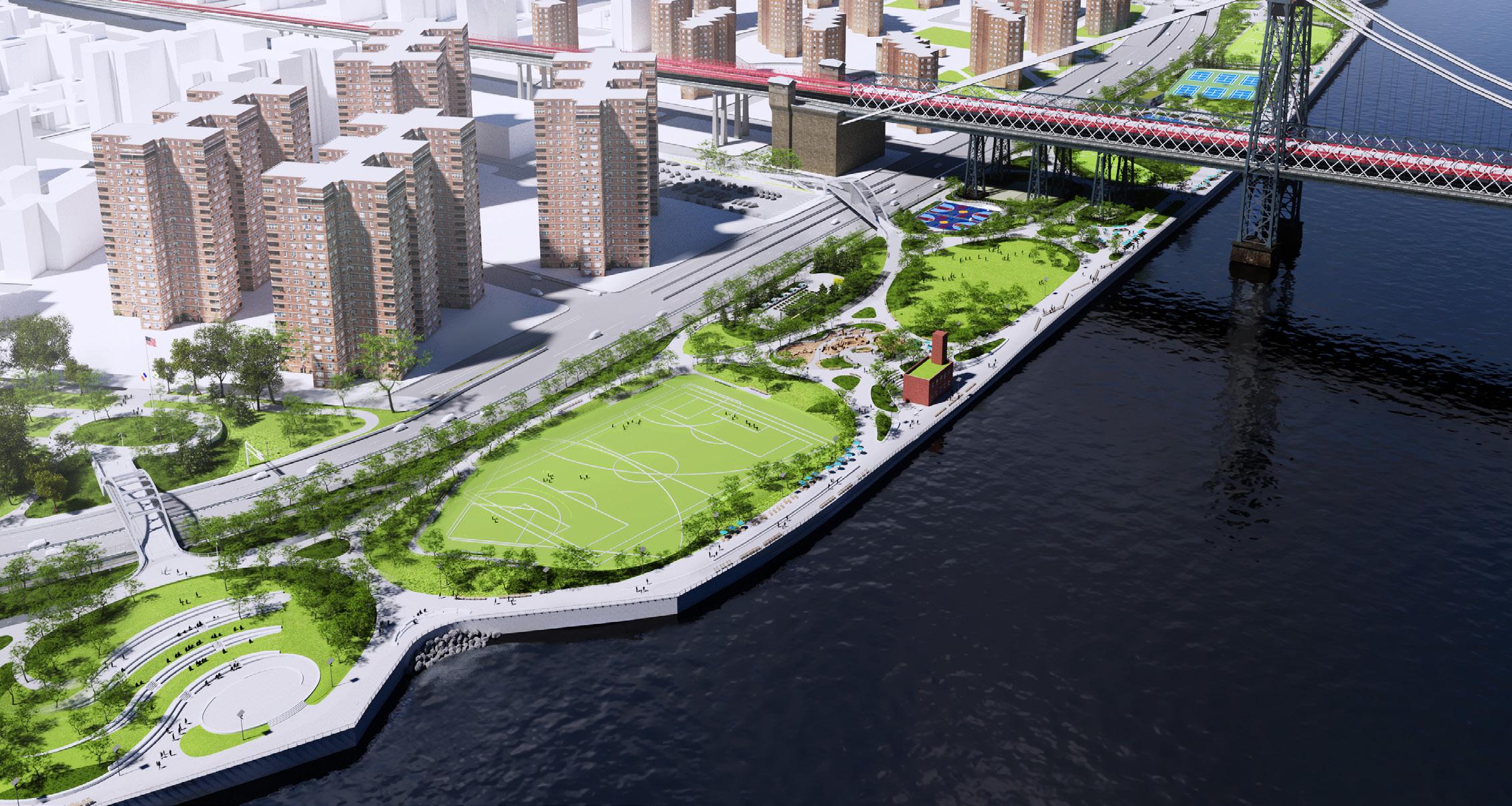 ESCR applied a mix of engineered and nature-based solutions to reduce flood risk and improve amenities and accessibility at East River Park