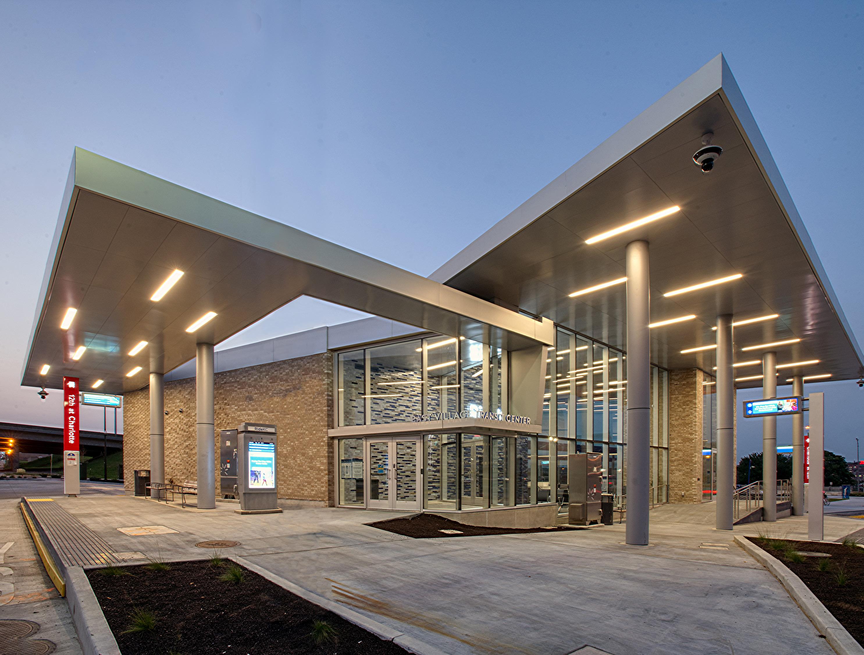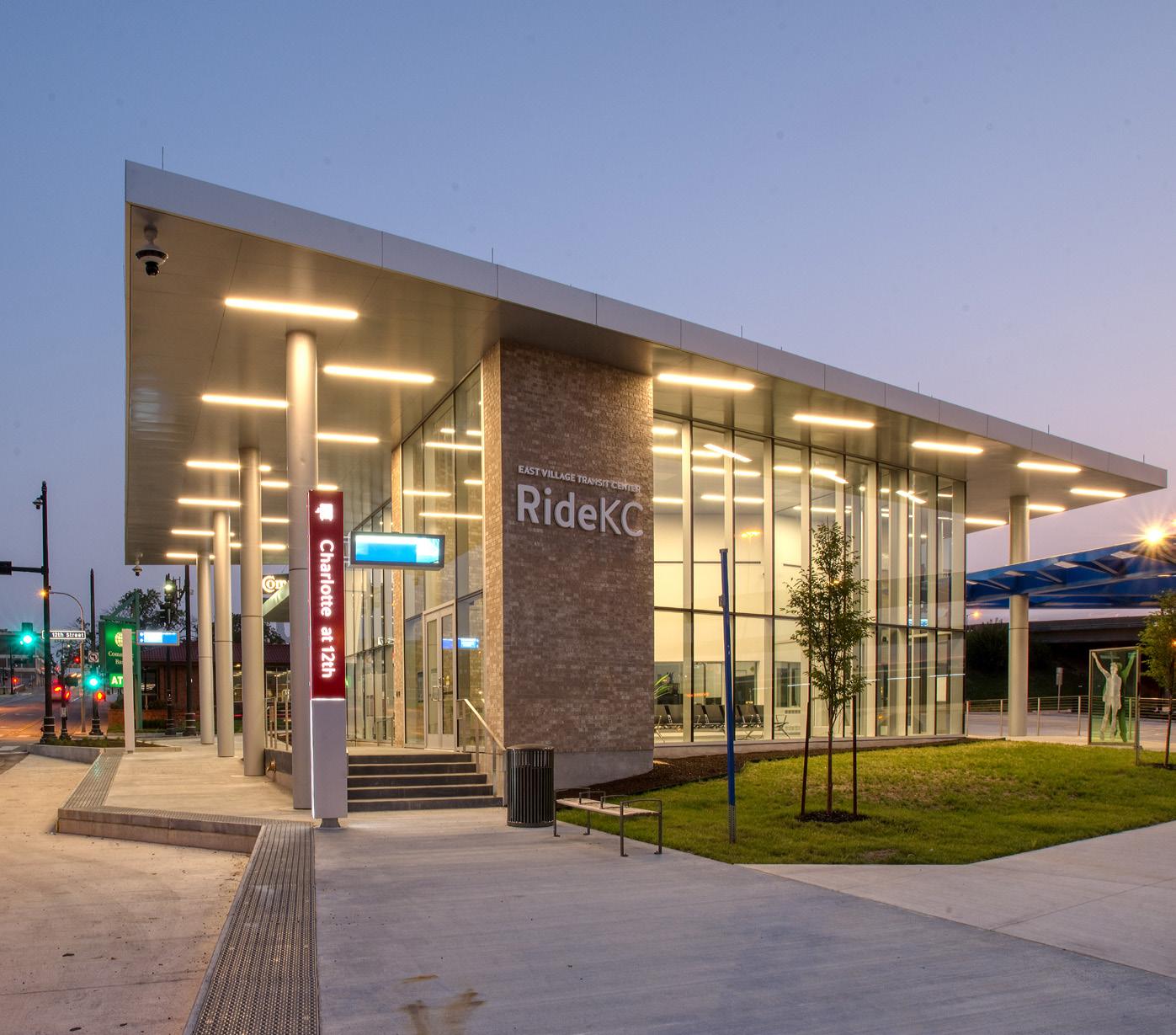 HNTB worked extensively with KCATA to enhance rider experience and develop a future-focused transit center. The resulting design is a modern facility with high-tech amenities that satisfies KCATA’s requirements for operations, safety and maintenance. The 10-mile Prospect Max Line is a new BRT route in Kansas City serving one of the most traveled corridors in the city. The corridor is anchored by the future downtown facility at East Village, which will serve multiple routes and connect riders to the city. HNTB provided concept design to construction administration for the project route stations and the main transit station. Station construction began in 2018 and was completed in 2020.