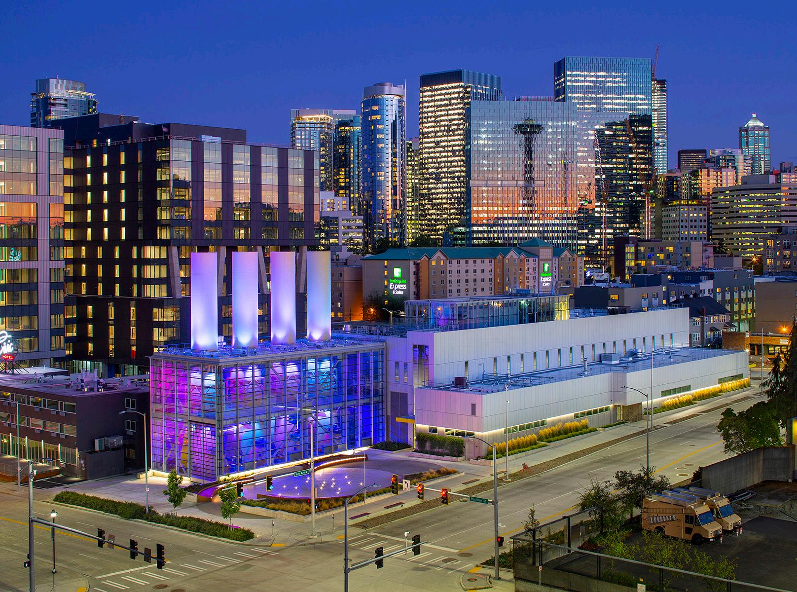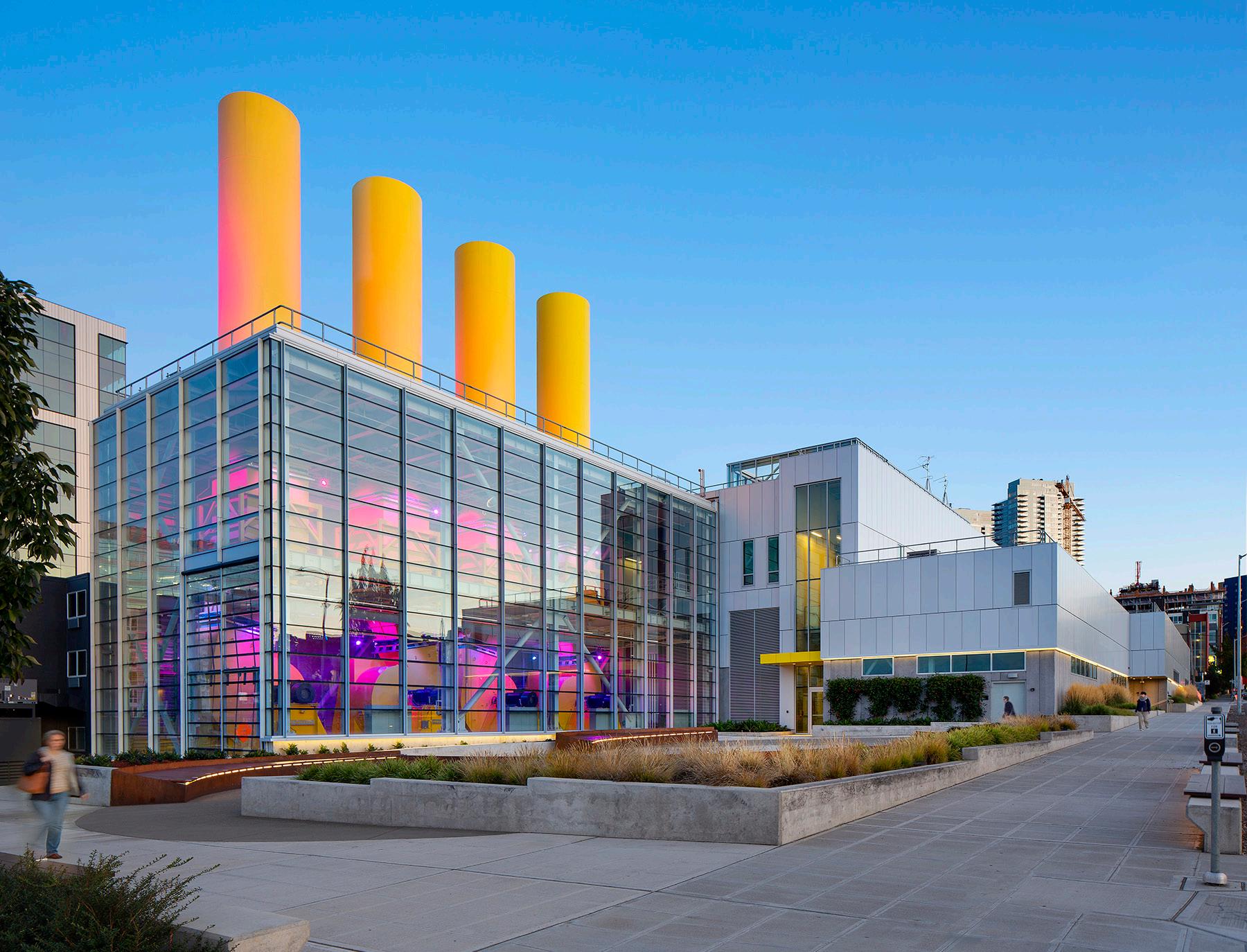 The landmark ventilation buildings of the SR-99 Alaskan Way Tunnel are the transparent, brightly colored visible manifestations of a much larger (and largely invisible) major tunnel that lies beneath the surface of downtown Seattle.
