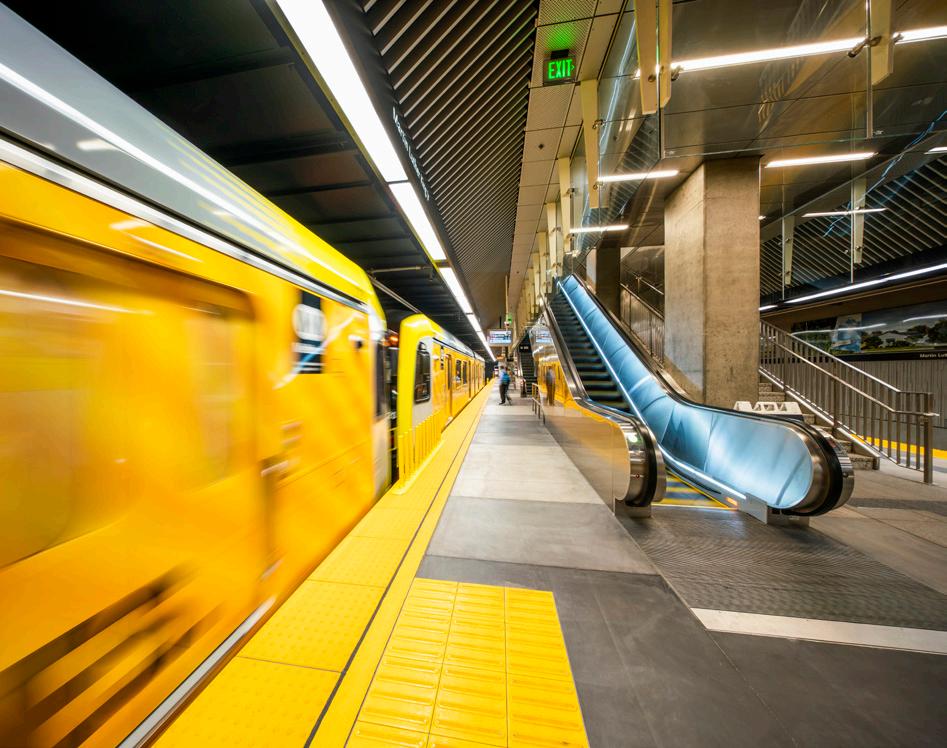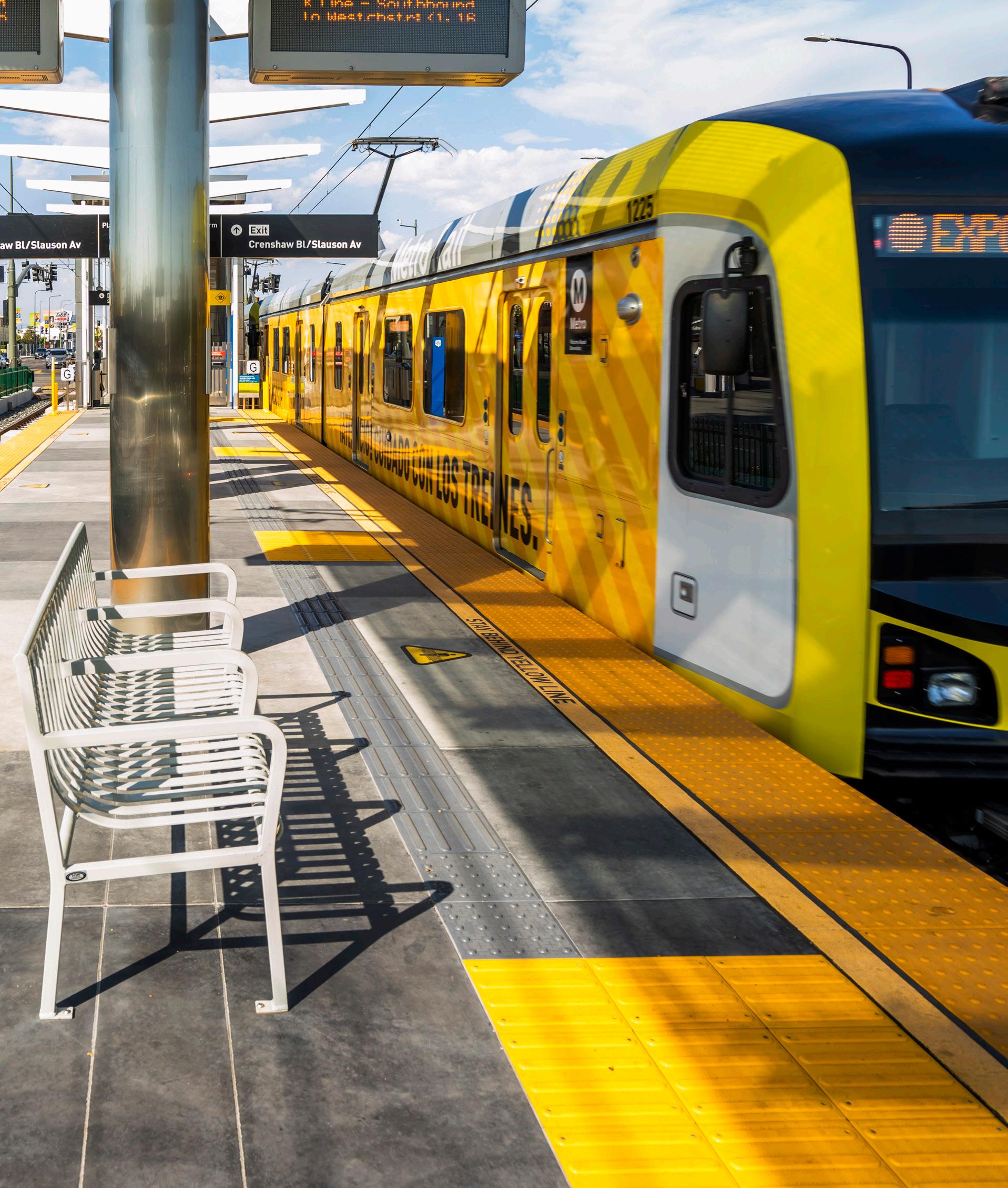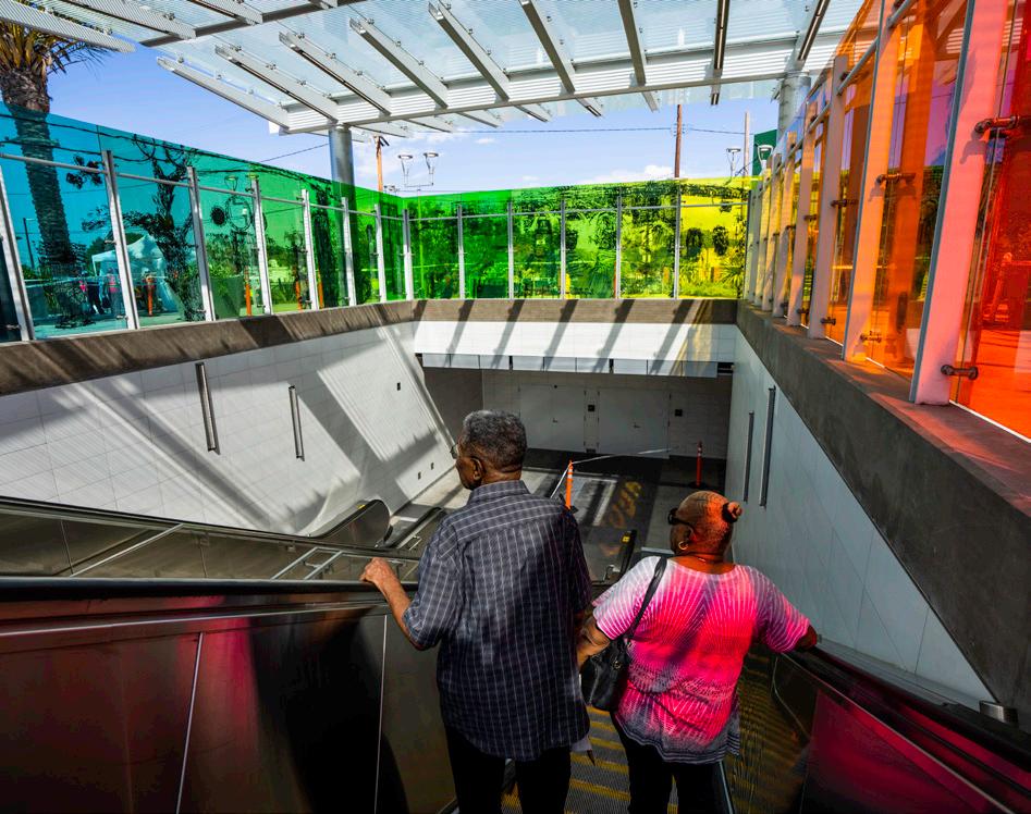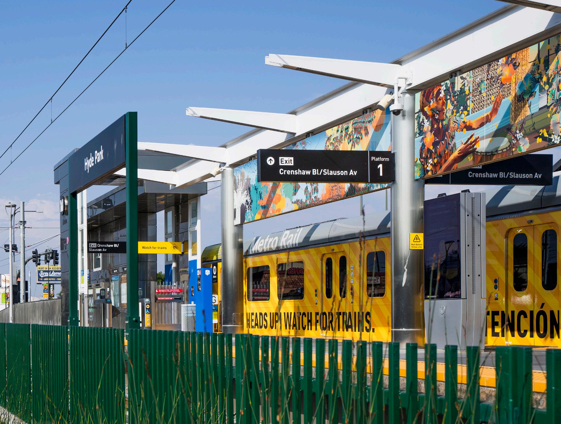 The new Crenshaw Metro Station will link Los Angeles International Airport with the growing Metro rail network. Included in the station’s design are one elevated station, one station at-grade and three underground stations that will serve LA’s diverse neighborhoods from downtown Inglewood to Leimert Park in southwest Los Angeles.