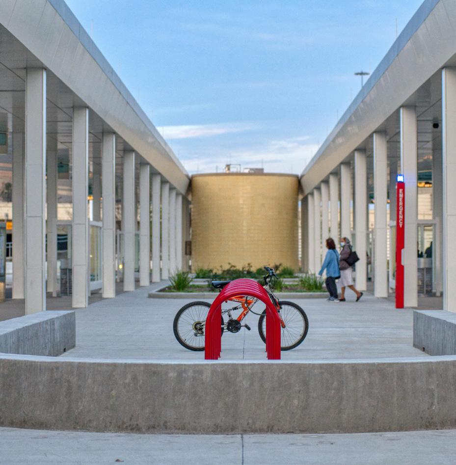 With many large transit projects, the integration of active transportation becomes a large component of the design choices made while the project or system’s big picture are developed. The focus of the active transportation elements are intended to cater to the first and last mile of an individual’s journey to or from their destination. This can mean anything from designing pedestrian-activated crosswalks to separated bike lanes, urban plazas with shade structures and seating and planted streetscapes that welcome you into stations.