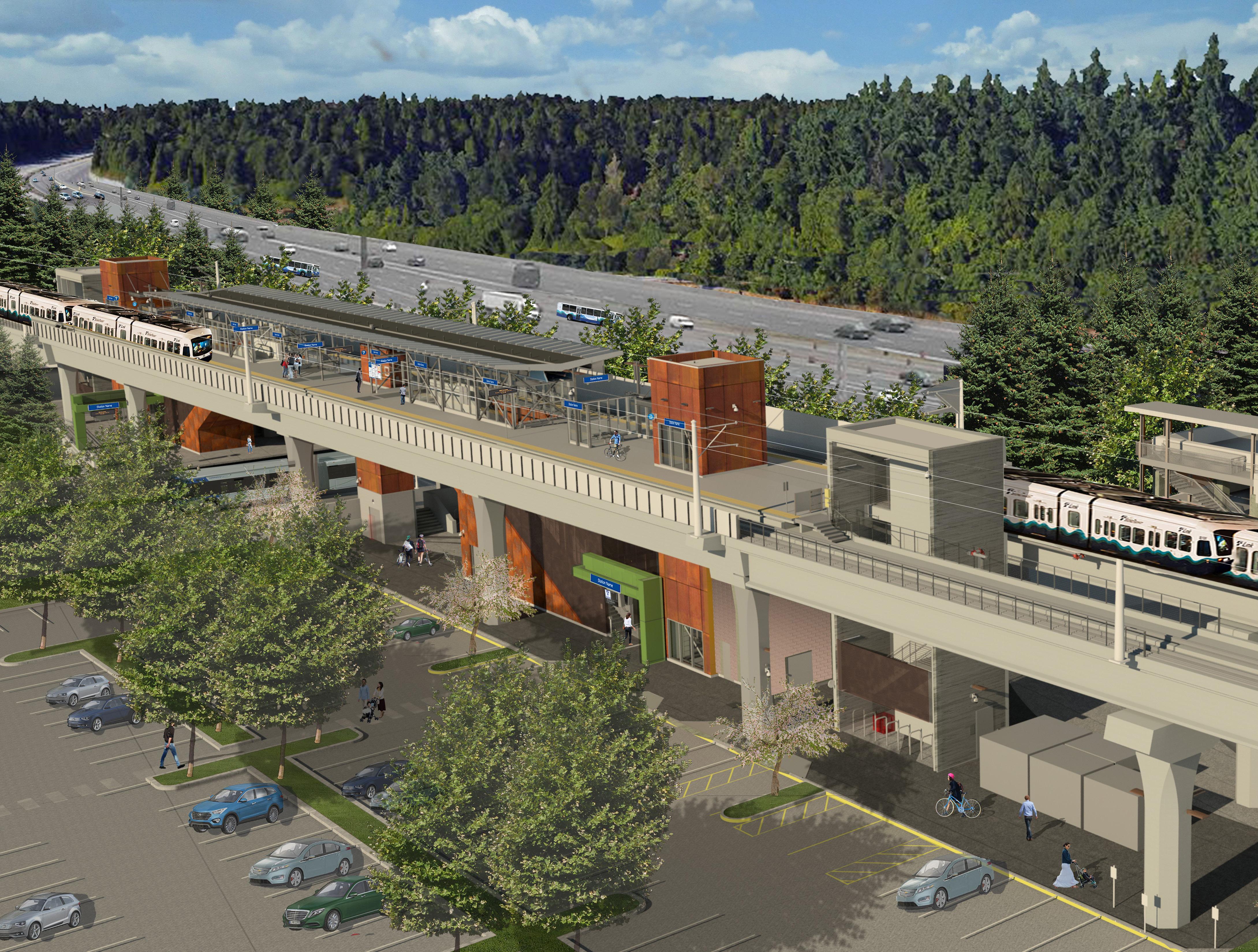 HNTB’s landscape and urban architects developed an aesthetic design that blends visual elements of the Puget Sound region. Treetop-level platforms will offer passengers with views of the Olympic and Cascade Mountains. Public art is a major component of this project and was woven into the underside of the station structure to form a new gateway over a major street passing below the station.