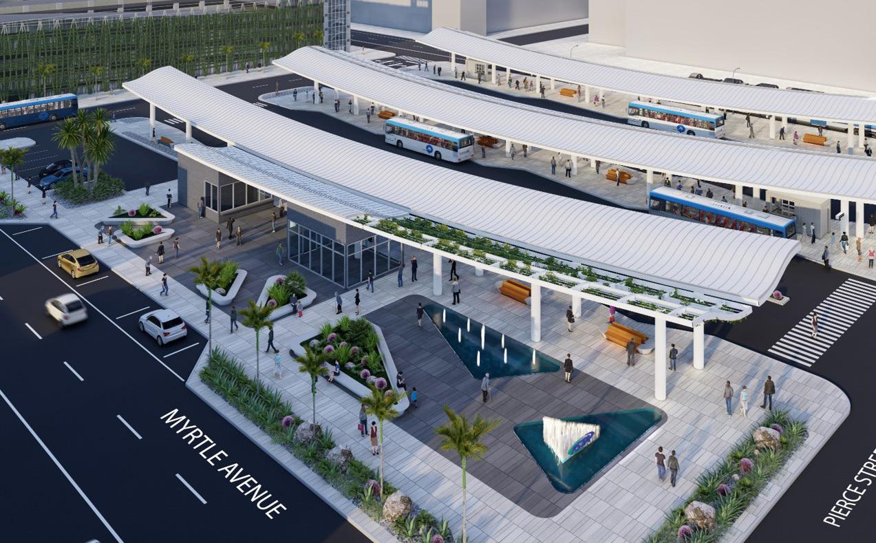 HNTB was the Design Architect responsible for planning, programming and concept design for feasibility as well as grant application support for a new urban intermodal transit center in Clearwater, FL. The intermodal facility included three ample bus platforms covered by graceful swooping canopies, PSTA office space, customer interaction spaces, police office space and supporting station/ customer amenities plus a future light rail station accommodation. Additional site elements included a mini-park, bike facilities and public fountain along Myrtle Avenue. The center will be the main hub for all lines BRT and potential light rail transit (LRT). Multiple scenarios were considered, including coexisting with new city functions and planning for short and long term.