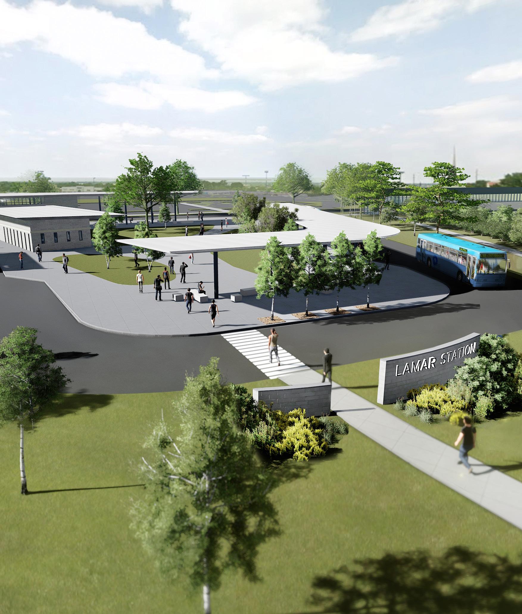 HNTB was the Concept Designer and is currently the Planning Consultant for the North Lamar Transit Center, Plaza Saltillo, and Leander Station. The scope of work includes a framework for innovative mobility services, multiple station designs, and revenue evaluation for the client. The initial design included three stations that would help improve transit services and amenities, increase safety, and increase potential commercial opportunities. The design included air-conditioned space for waiting and restrooms, canopies, a grade-separated walkway to connect to MetroRapid services along North Lamar Boulevard, and a trail connection to the Leander Austin Community College (ACC) Campus.