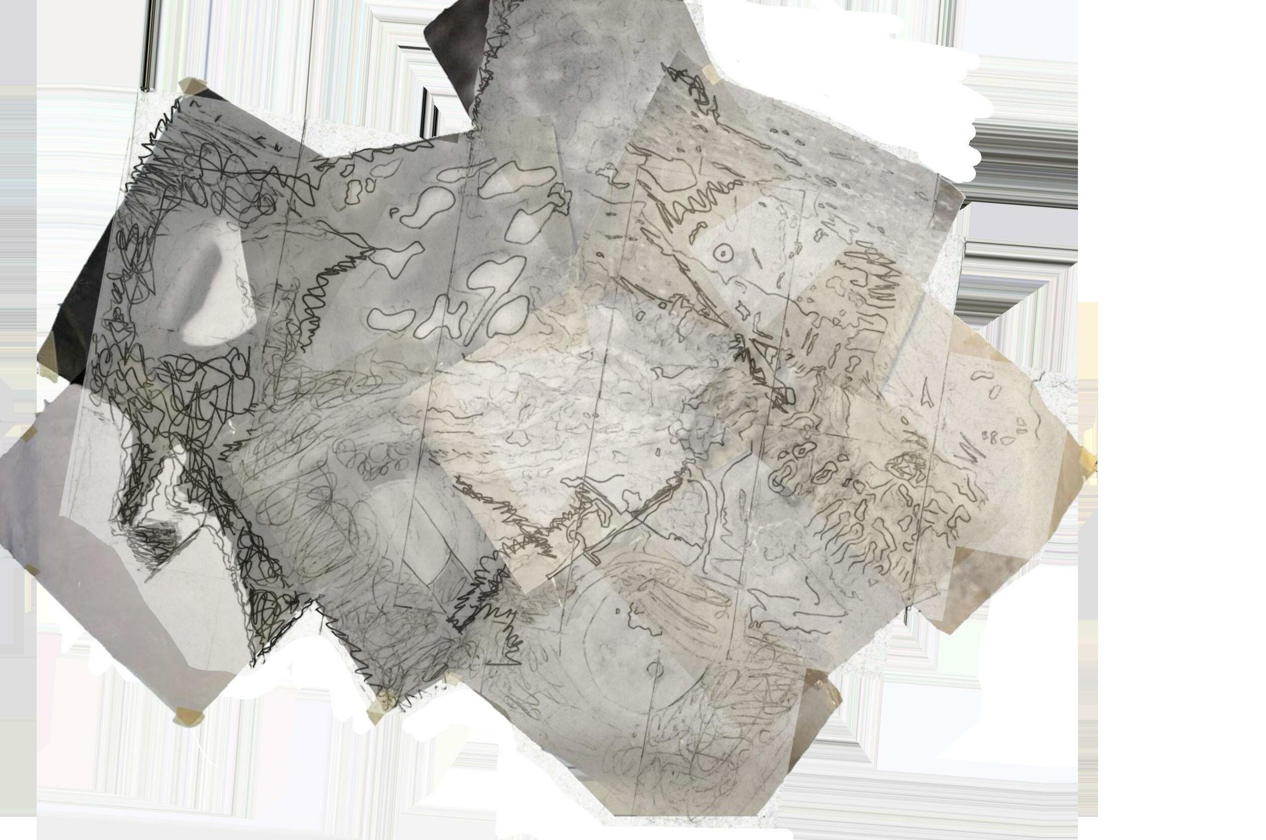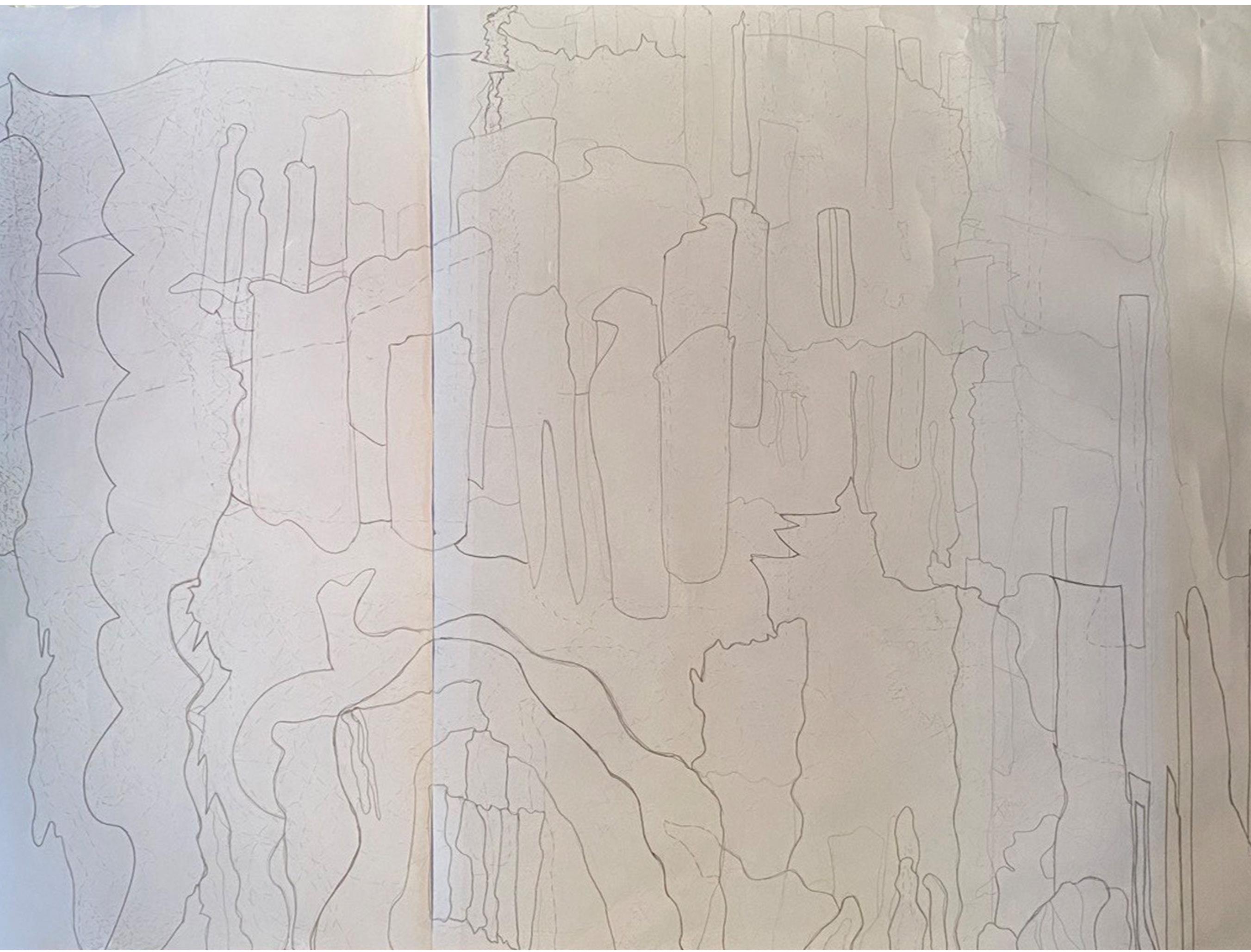 Upon completing the collage, I had to trace out elements that we used to compile these images. I was surprised when we were using the tracing as a floorplan. I had to then follow and understand the connections within the collage and the layer above is the end result.