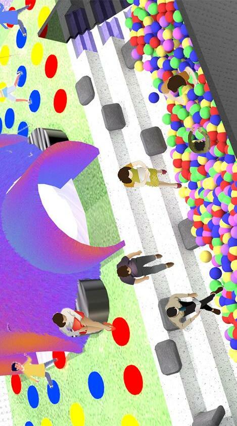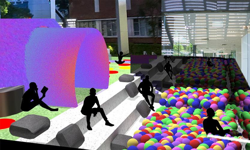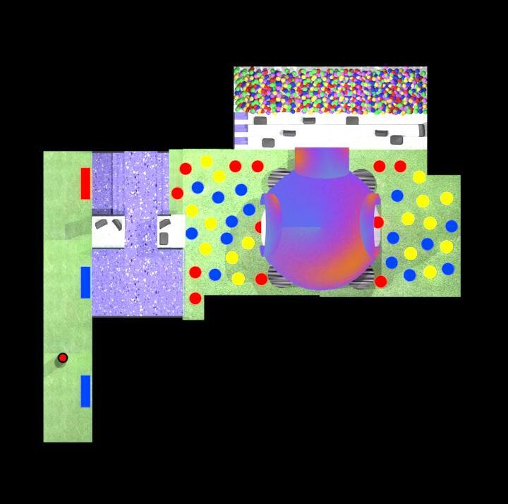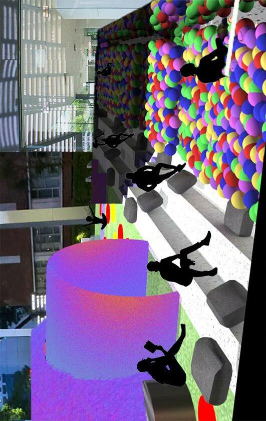 This is the last zone within the space. A big ball pit made from an existing staircase.