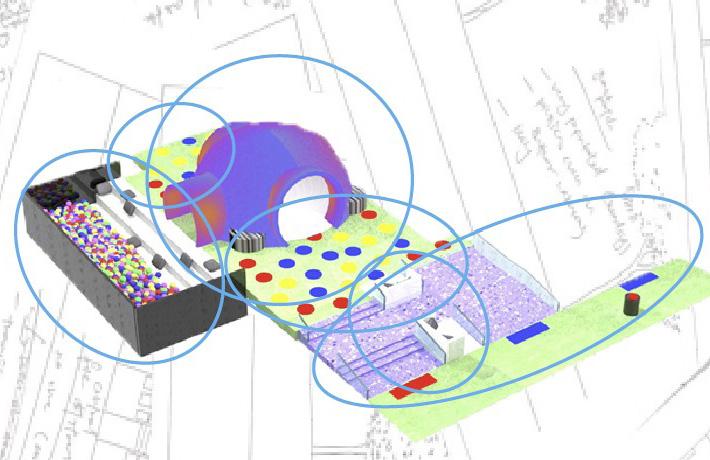 There were a total of 4 zones in the space. Showing different spaces within the entire site. Having this overall view, shows the experiences that could potentially be in each individual space.