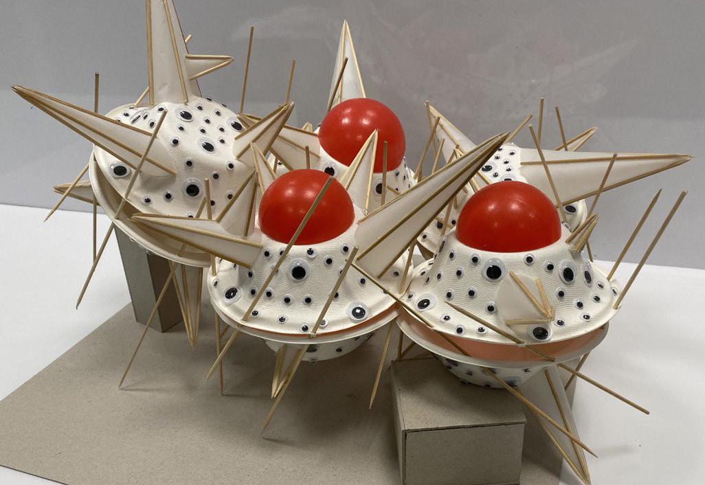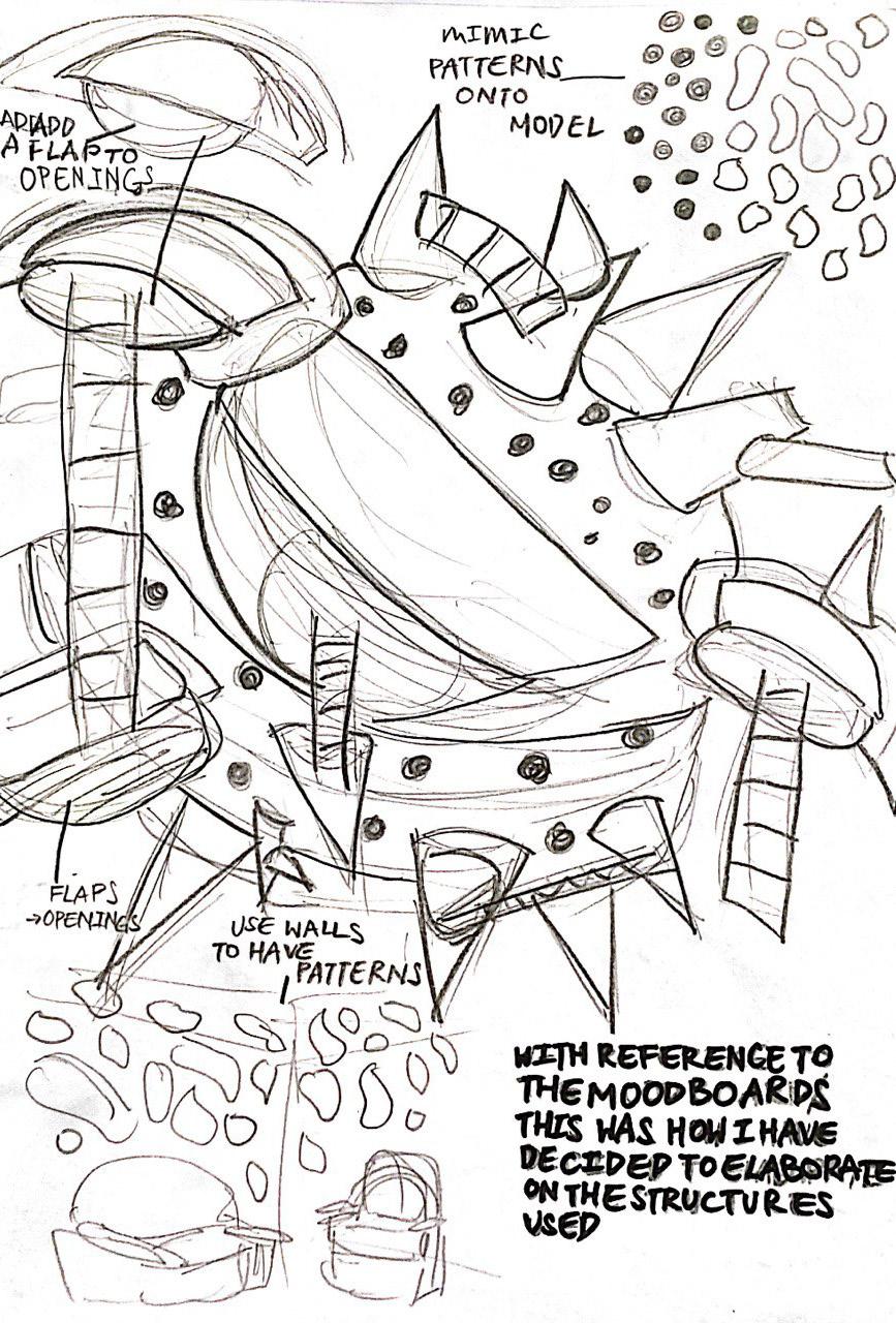 Initially I started off at 01-03 which are my study models by taking up a form of a pufferfish and made them using paper/newspaper and masking tape fo start with ideation and visualisation of my end product. Creating a component and evolving it to a bigger structure. Eventually getting the form I desired.