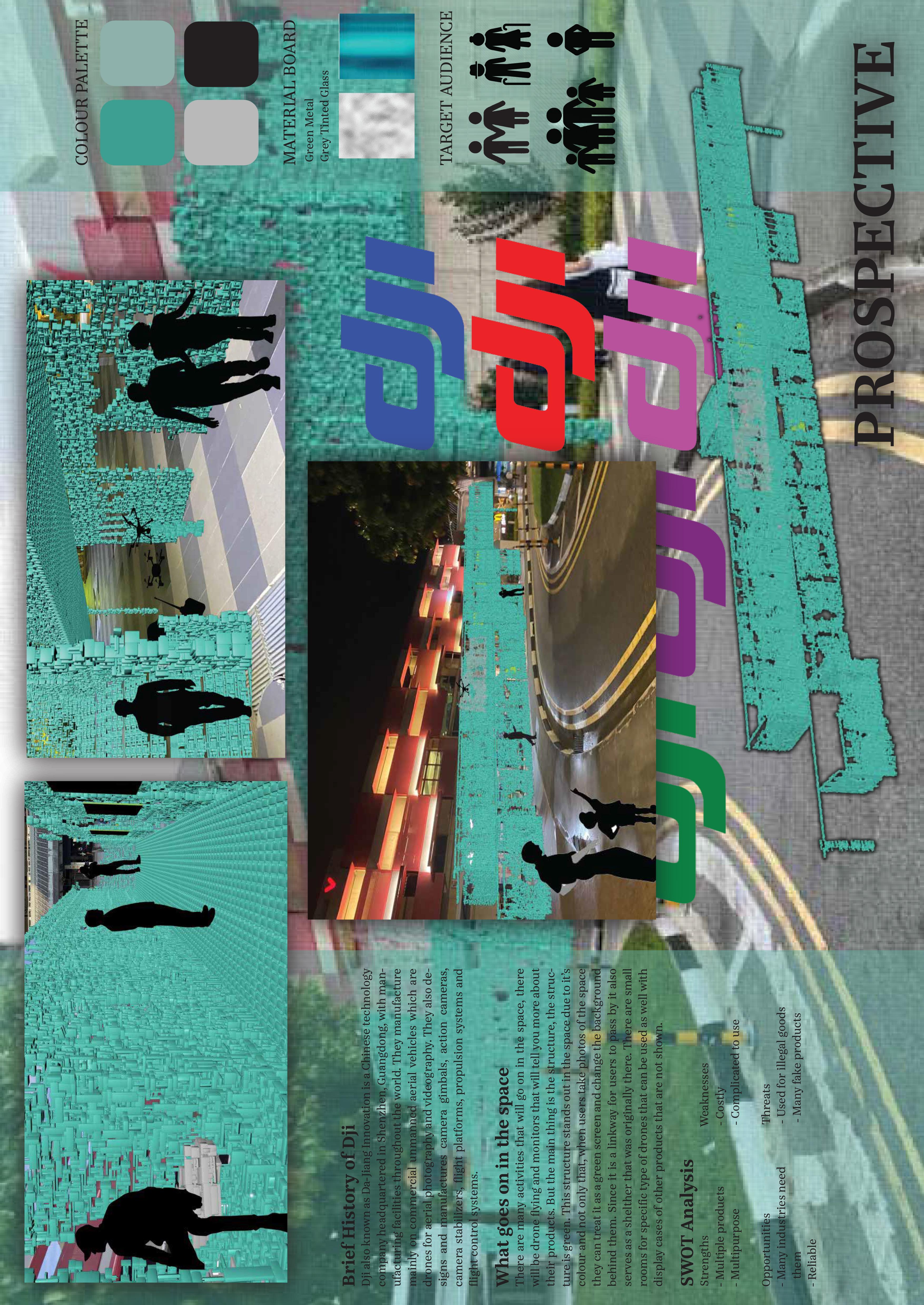 The whole project was also reliant on the company chosen for us and how we inccorporate the design to create the best user experience. I ended up getting allocated to Dji, this was a studio project. Having a site of choice, I chose a neighbourhood area. Showing how the space allows people to know the company in relation to their surroundings.