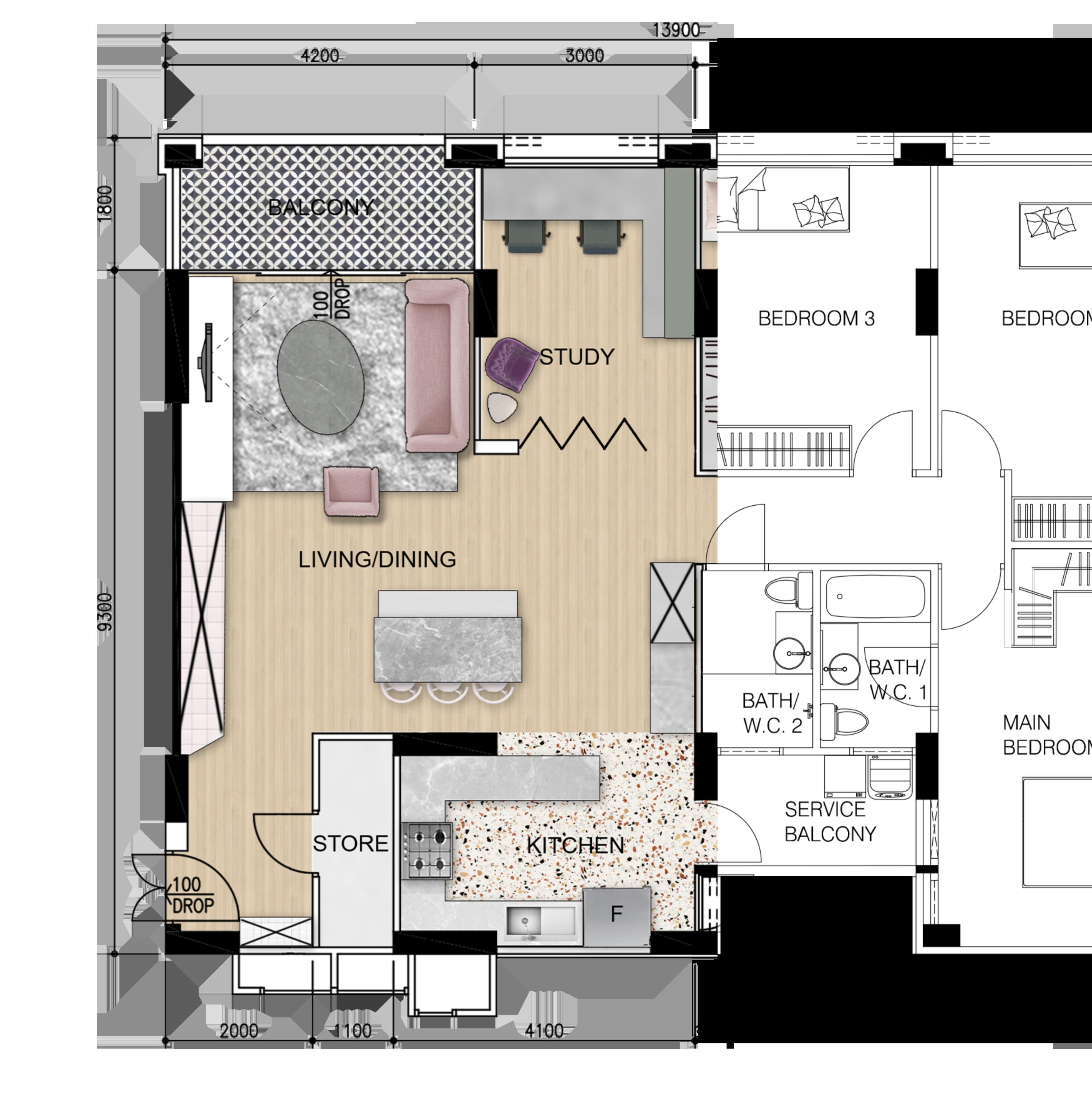I had currently helped out in 4 projects so far as they are still starting out on interior design works. I really enjoyed myself as there was a lot of freedom to do these drawings and since I am doing freelance works for them.