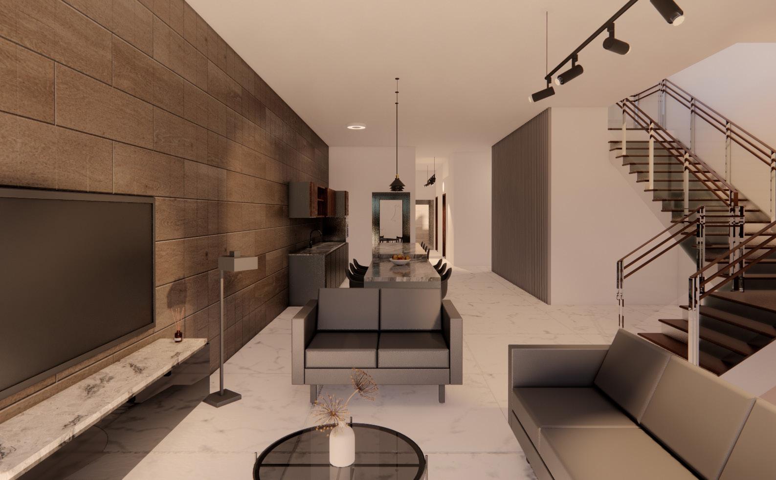 For 105 Tanah Merah Kehil Road South, I got to help draw a floorplan, some elevations, develop a mood board of my own planning and as well as do out some renders as well. It is a three level inter terrace and they were planning to go for a modern luxury theme. My manager gave me the chance to design the space.