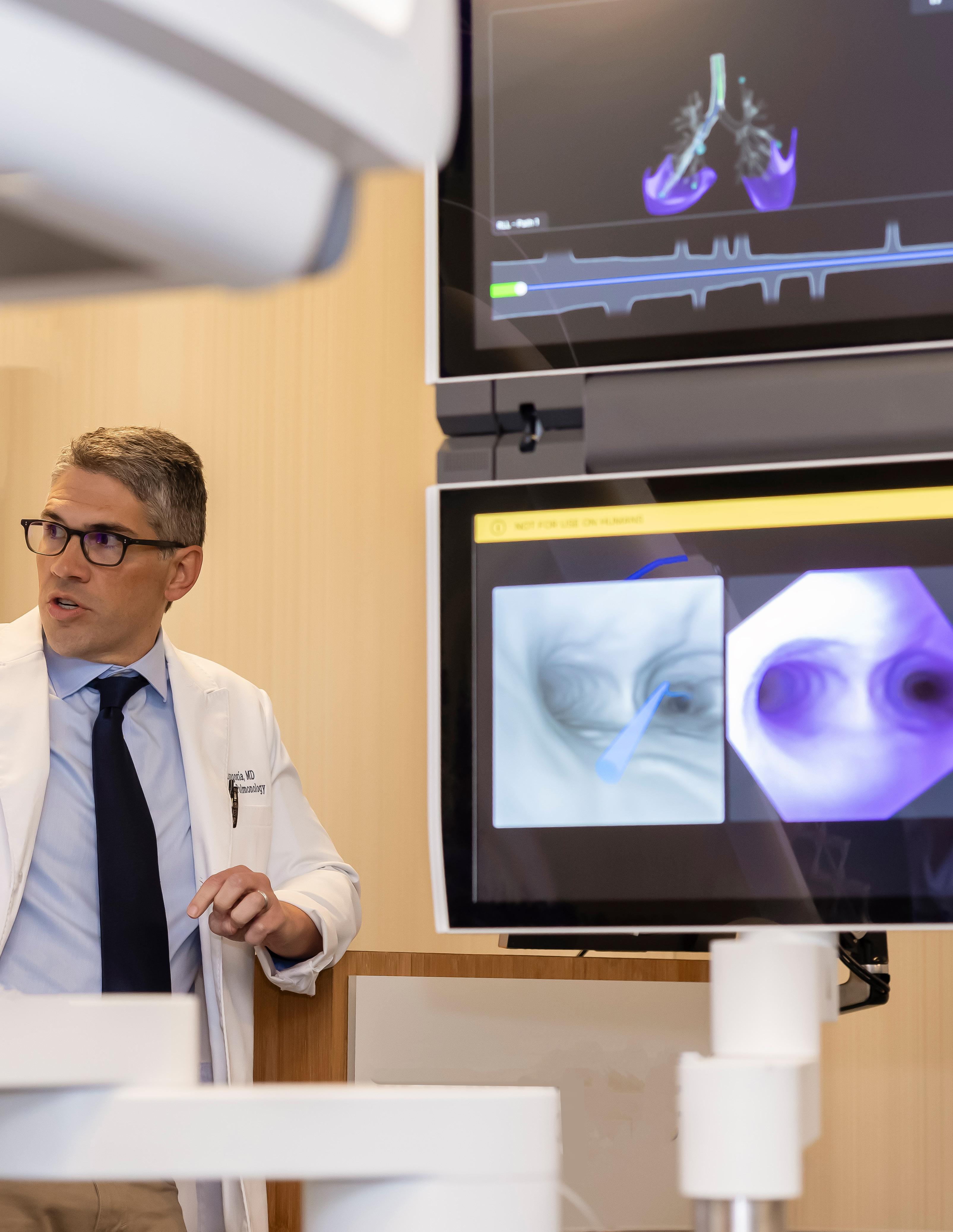 Before these advancements, patients typically required a CT-guided biopsy through the chest, a process with higher risks and longer turnaround times. “We’re the only hospital in California using all three of these technologies together in a single procedure,” says Javier Longoria, MD, an interventional pulmonologist at Hoag. "This makes diagnosis safer and more precise.”