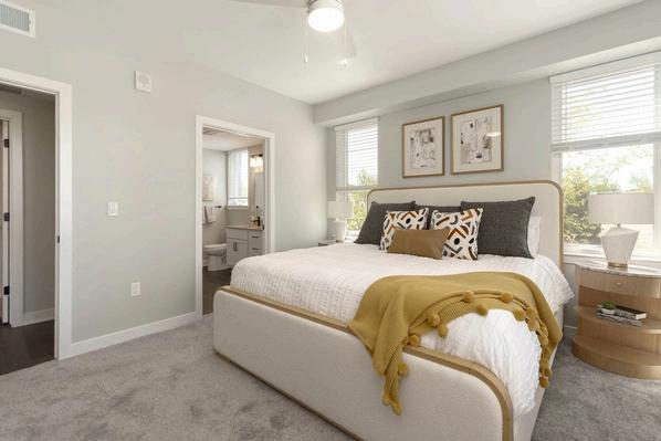 The apartment units are housed in four-story buildings with elevators and enclosed parking at grade. Apartment garages face a rear parking court, with first floor units and townhouses facing the residential street. The 256 units are made up of 48 one-bedroom, 72 two-bedroom, and 136 three-bedroom units Amenities include individual outdoor areas and a community building with a fitness center and pool