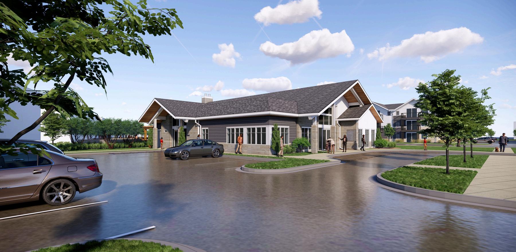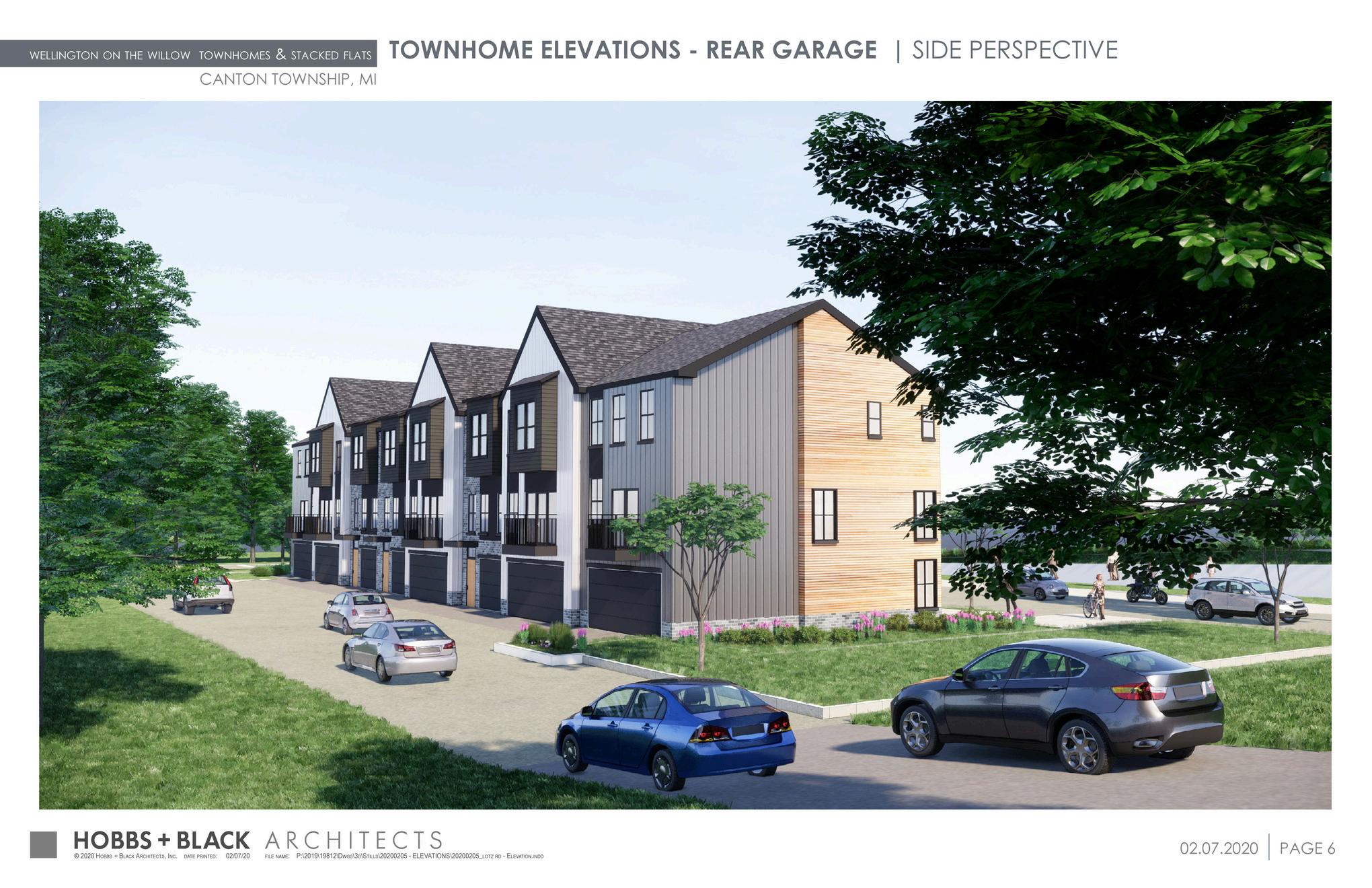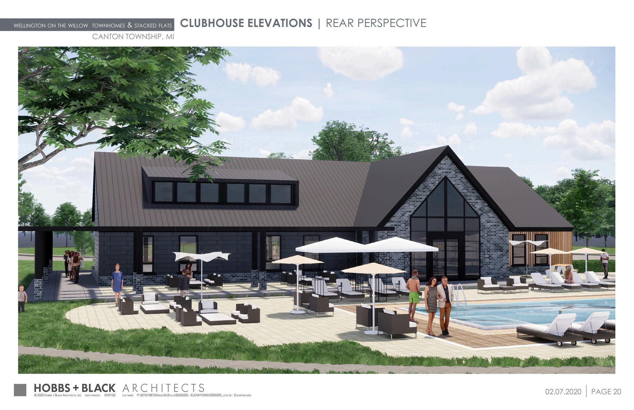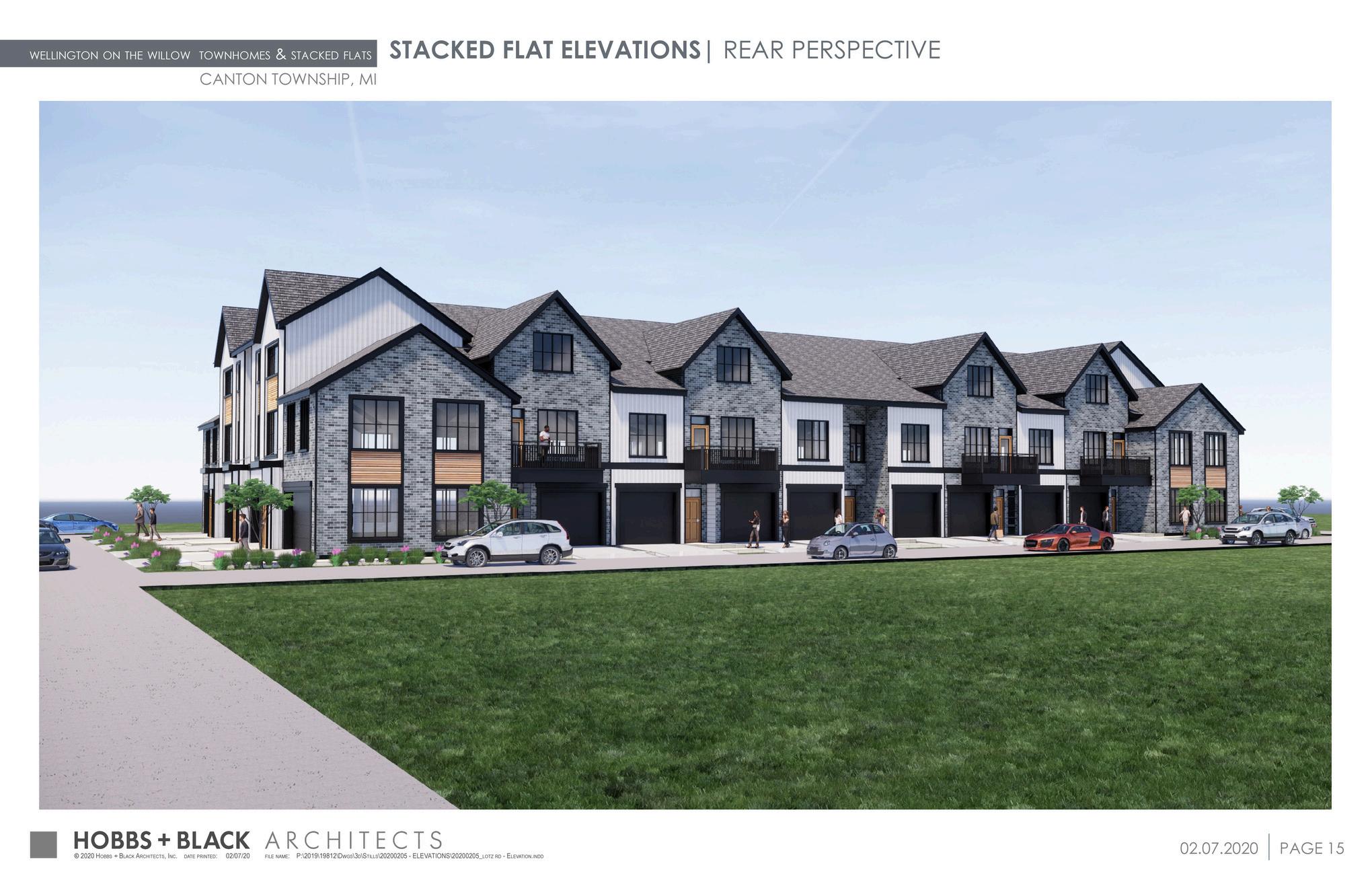 This new multifamily development is being developed on Lotz Road in Canton, Mi. The project consists of 267 dwelling units distributed among 30 individual buildings in both townhome and stacked ranch unit types The development was careful to conserve natural areas and integrated water detention into the planning The buildings were designed in a tasteful approach by merging traditional residential styling and contemporary materiality. Hobbs+Black also designed the clubhouse and amenity areas.