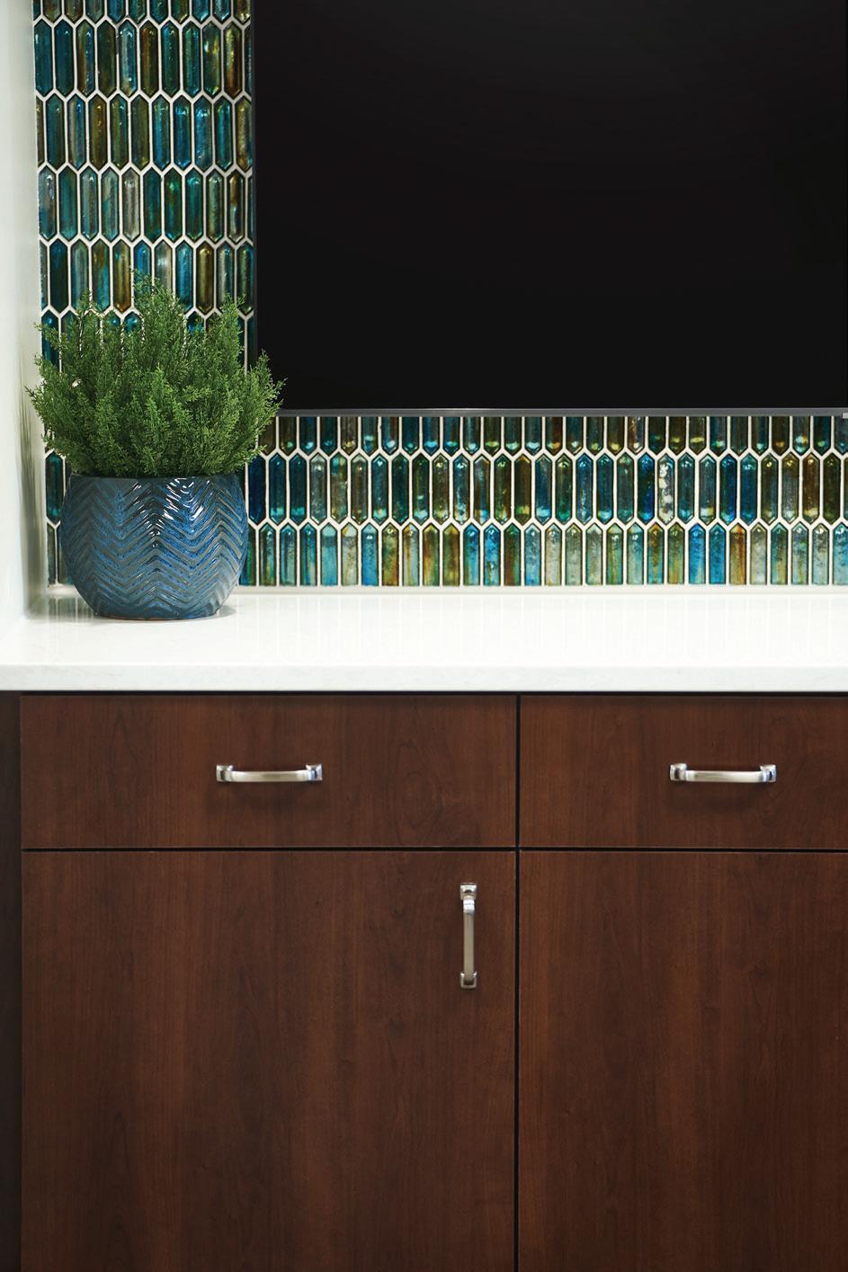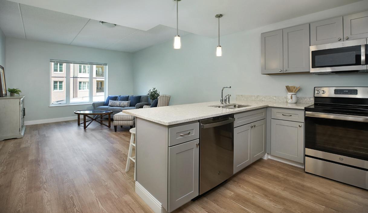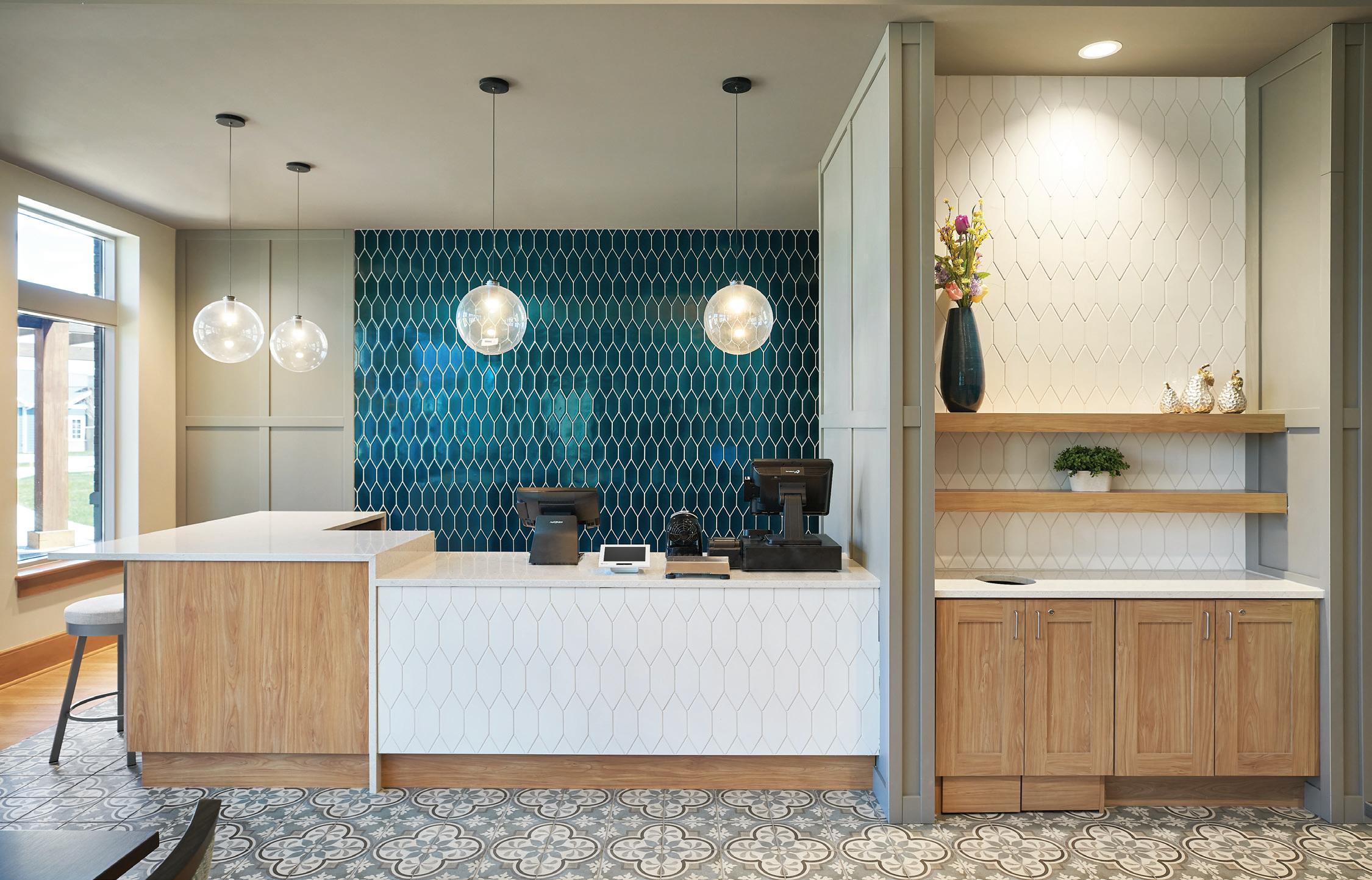 The interior received a dramatic transformation with renovations to the lobby, public corridors, and dining areas, with reconfiguration of offices. The business development offices were moved to the front entrance of the building, adjacent to the discovery area, where prospective residents research the community in order to create a strategically efficient welcoming space. New millwork that meets ADA standards, bright and modern finishes, and new lighting were also introduced.