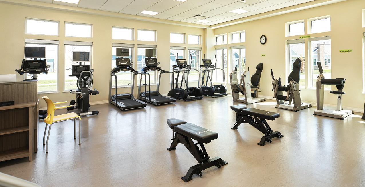 The Fitness Room refresh include: new flooring and wall finishes; new graphics for walls to replace existing; and, new storage for equipment.
