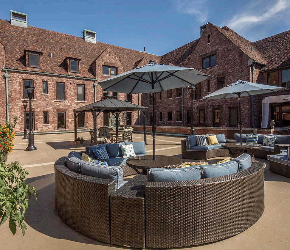 American House, a company specializing in senior living communities, has developed an assisted and independent living community located within the existing Henry Ford Cottage Hospital. The campus is conveniently located within the historic and desirable community of Grosse Pointe, and functions as an integral part of the core commercial and retail district. The existing building plan, which features Tudor design, surrounds an exterior courtyard and provides abundant natural light throughout the community. The second and third floors were re-purposed to accommodate 30 assisted living units, 10 memory care units, and 38 independent living units. Independent living comprises the entire second floor; assisted living and memory care occupy the third.