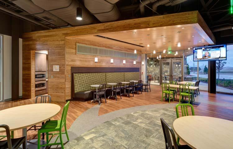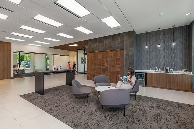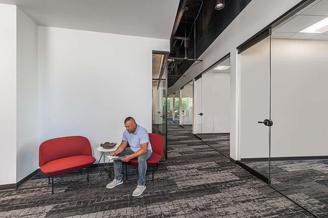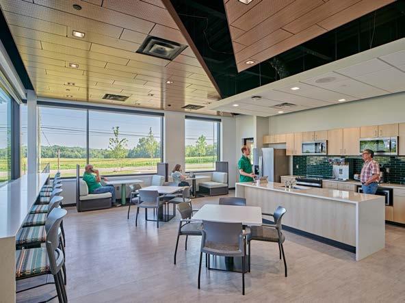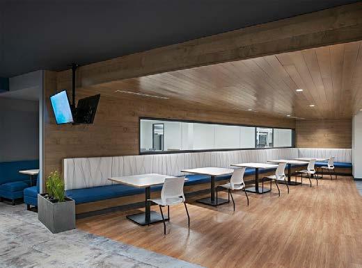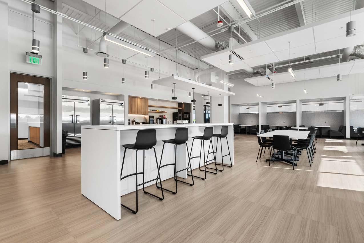 A centerpiece of the headquarters is a large gathering area designed for media streaming and live events, enabling seamless connectivity for teams across the country. Reflecting Healthrise's "work hard, play hard" ethos, the office includes engaging amenities such as a golf simulator and a ping-pong table, ensuring employees can recharge and stay motivated during long hours.