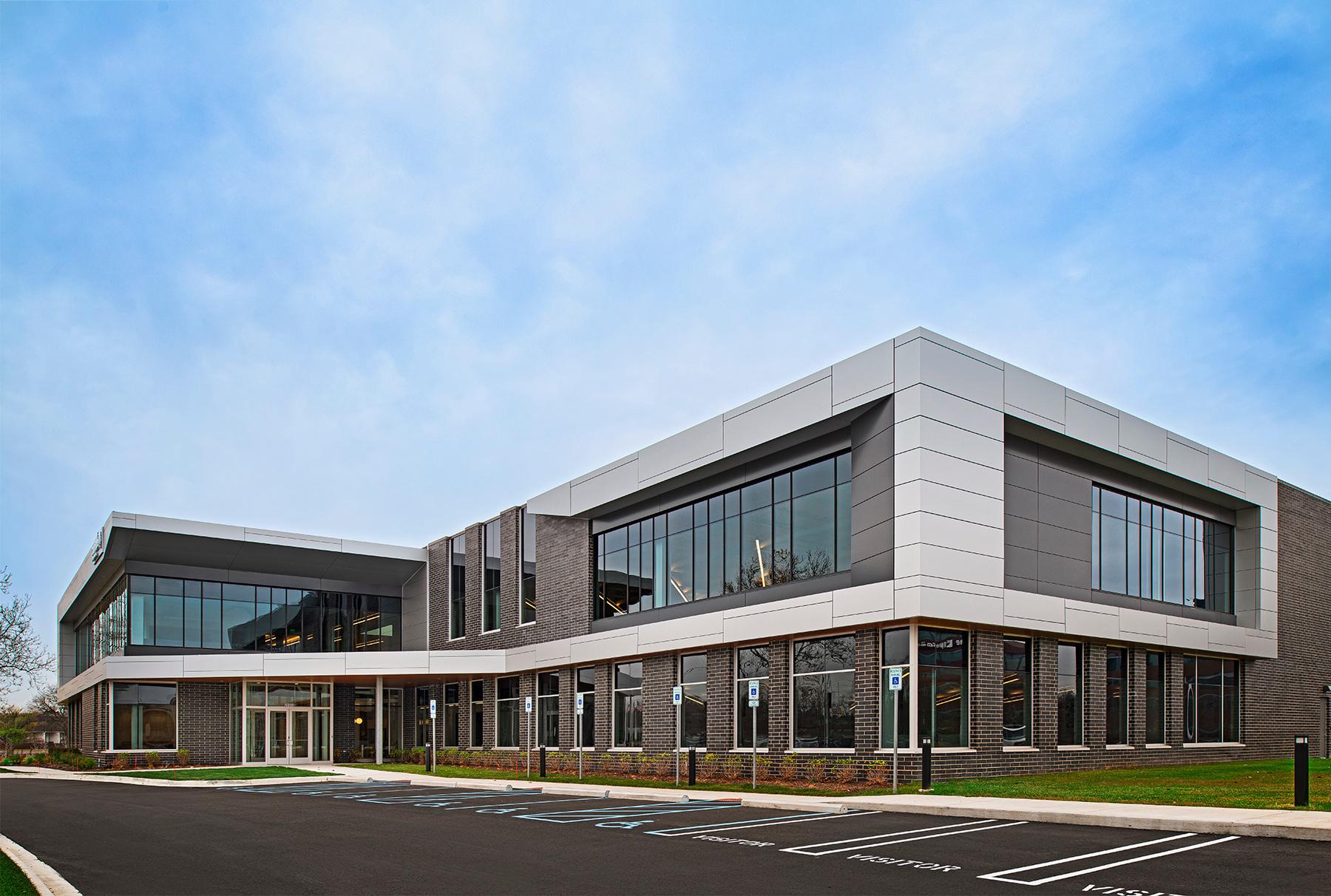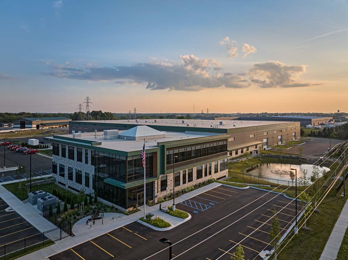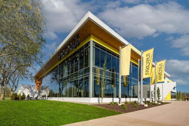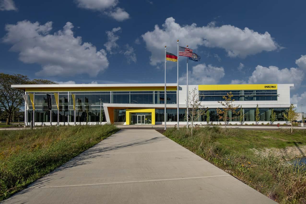 BioAnalytics" under construction on Ann Arbor's south side. The culmination of months of planning, design, and engineering, Phase 1 features 130,000 s.f. of process development laboratories, engineering spaces, and administrative offices. In the context of pursuing LEED accreditation, the laboratory includes integrated sustainable design features such as photovoltaic solar panels, high performance glass, enhanced indoor air quality systems, EV charging stations and a bioswalebased storm water management system.
