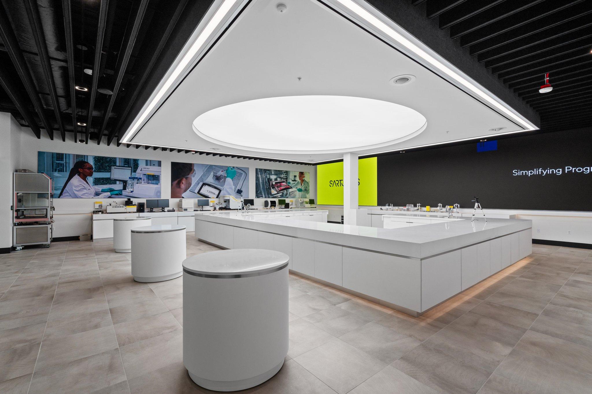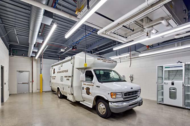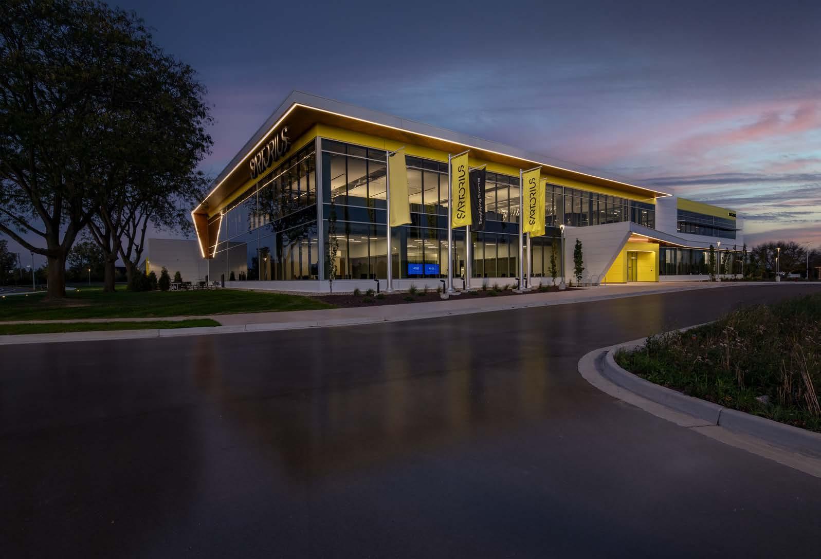 BioAnalytics" under construction on Ann Arbor's south side. The culmination of months of planning, design, and engineering, Phase 1 features 130,000 s.f. of process development laboratories, engineering spaces, and administrative offices. In the context of pursuing LEED accreditation, the laboratory includes integrated sustainable design features such as photovoltaic solar panels, high performance glass, enhanced indoor air quality systems, EV charging stations and a bioswalebased storm water management system.