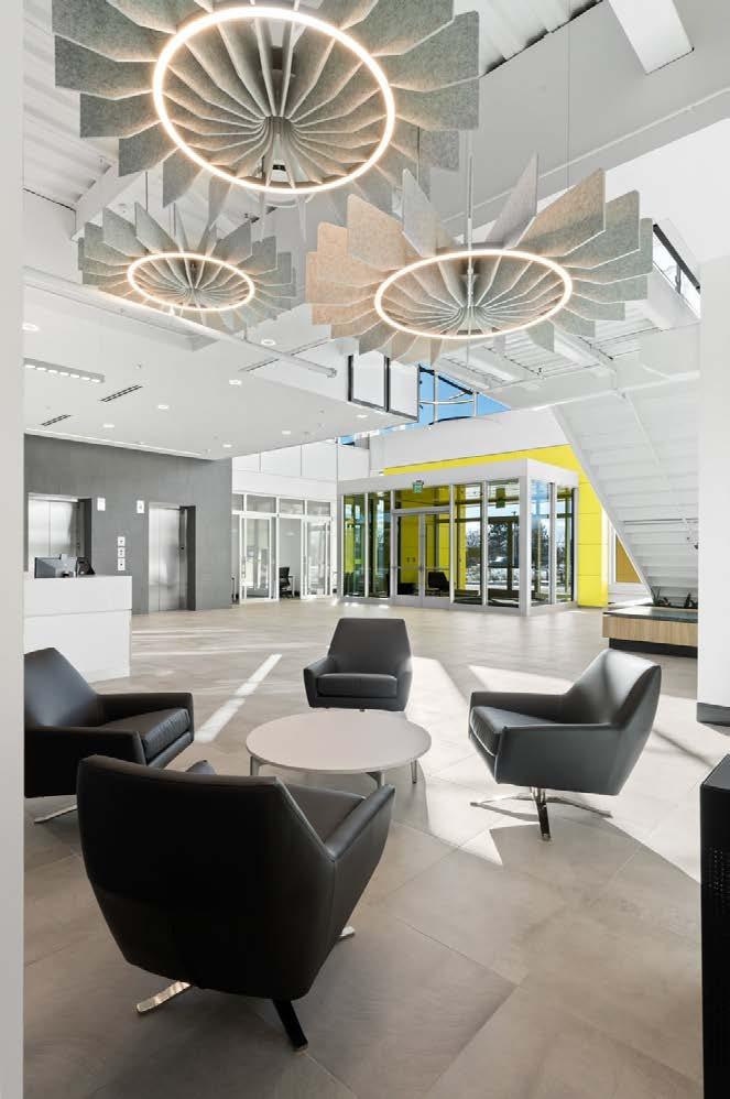 To meet an ambitious timeline, our team worked closely with Huntington Construction to implement a phased approach, issuing an early demolition package that allowed construction to begin before the completion of the full construction documents. This expedited process enabled tenants to move in just eight months after the project's kickoff. The result is a modern, functional, and energetic workspace that supports Healthrise's mission and values.